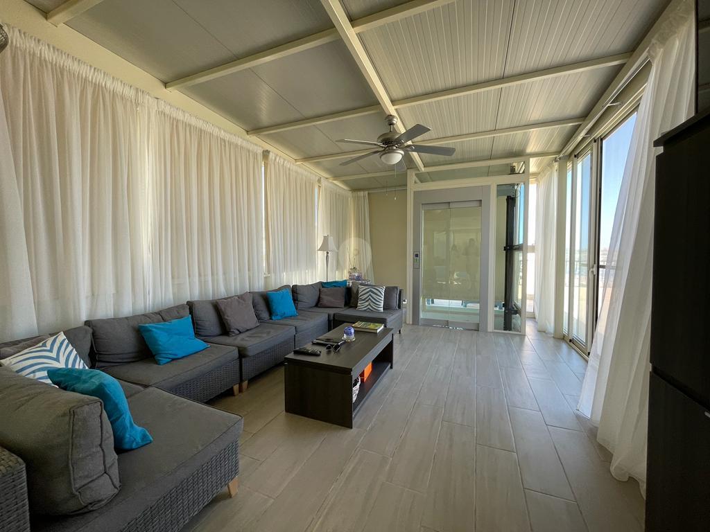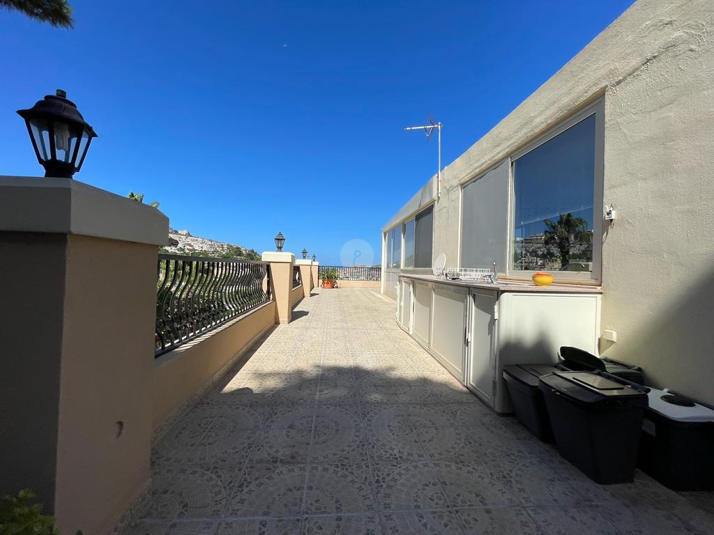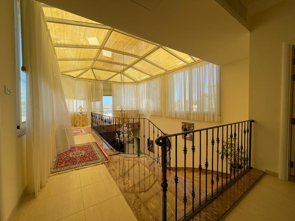 The second floor introduces a large skylight that bathes the villa in natural light, creating an atmosphere of serenity and openness. You will also find a remarkable rooftop terrace designed for entertainment and relaxation. Enjoy a large, 55sqm solar heated, private pool with a hot tub, indulge in shower rooms, and experience the epitome of culinary convenience with both indoor and outdoor kitchens. A staircase leads to a viewing deck above the pool, offering astounding vistas of Ghadira Bay and the iconic Red Tower.
