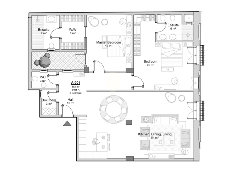 The internal courtyard will have a very sophisticated retractable roof which will flood the property with natural light. This will close automatically when it is raining but opens up in case of a fire.