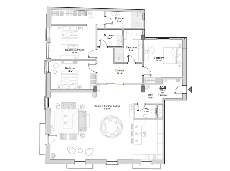 The internal courtyard will have a very sophisticated retractable roof which will flood the property with natural light. This will close automatically when it is raining but opens up in case of a fire.