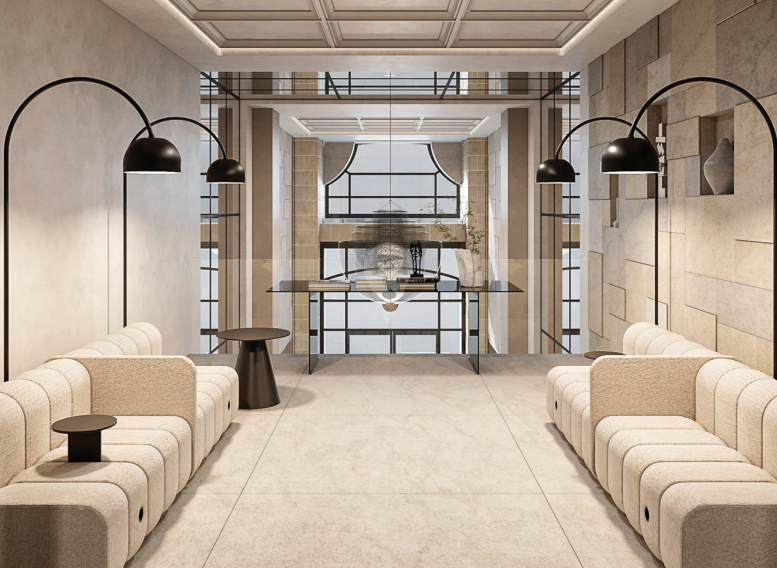 The main entrance of the building has been designed based on a similar alignment and proportion of the old entrance into the building. Its size and proportions give it a sense of subtle grandeur, without being too imposing as compared to palace entrances. The entrance leads to the main core and circulation as well as the grand courtyard. In the grand courtyard at the central core of the project, one finds a lounge area on the ground floor where residents or their guests can meet or relax in a common space. A water feature and greenery lend to the serene atmosphere. In the grand courtyard, one finds the internal walkways linking the various apartments at all levels. The grand courtyard is modeled on the internal yards of palaces and grand buildings found in Valletta which include the open walkways overlooking the ground floor common spaces.