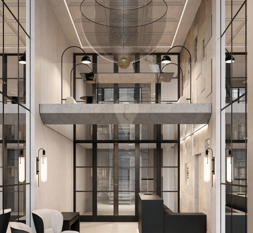 The main entrance of the building has been designed based on a similar alignment and proportion of the old entrance into the building. Its size and proportions give it a sense of subtle grandeur, without being too imposing as compared to palace entrances. The entrance leads to the main core and circulation as well as the grand courtyard. In the grand courtyard at the central core of the project, one finds a lounge area on the ground floor where residents or their guests can meet or relax in a common space. A water feature and greenery lend to the serene atmosphere. In the grand courtyard, one finds the internal walkways linking the various apartments at all levels. The grand courtyard is modeled on the internal yards of palaces and grand buildings found in Valletta which include the open walkways overlooking the ground floor common spaces.