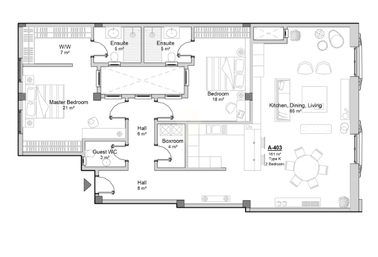 The main entrance of the building has been designed based on a similar alignment and proportion of the old entrance into the building. Its size and proportions give it a sense of subtle grandeur, without being too imposing as compared to palace entrances. The entrance leads to the main core and circulation as well as the grand courtyard. In the grand courtyard at the central core of the project, one finds a lounge area on the ground floor where residents or their guests can meet or relax in a common space. A water feature and greenery lend to the serene atmosphere. In the grand courtyard, one finds the internal walkways linking the various apartments at all levels. The grand courtyard is modeled on the internal yards of palaces and grand buildings found in Valletta which include the open walkways overlooking the ground floor common spaces.