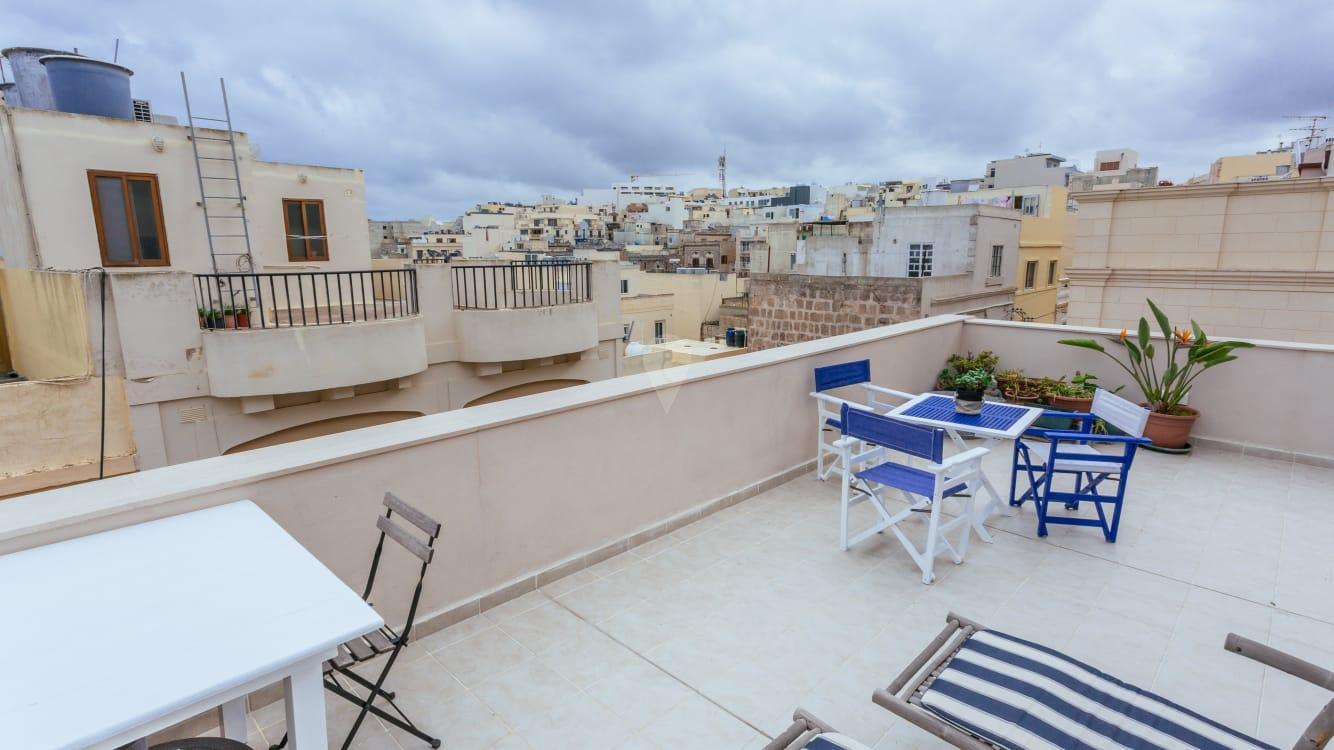 This property consists of a welcoming reception area, leading to a breakfast area/kitchen, bathroom, and two bedrooms on the first floor. At the second floor level, one finds four bedrooms and two bathrooms, whilst at the roof level one finds a washroom, an additional bedroom with a WC, and a full roof terrace.