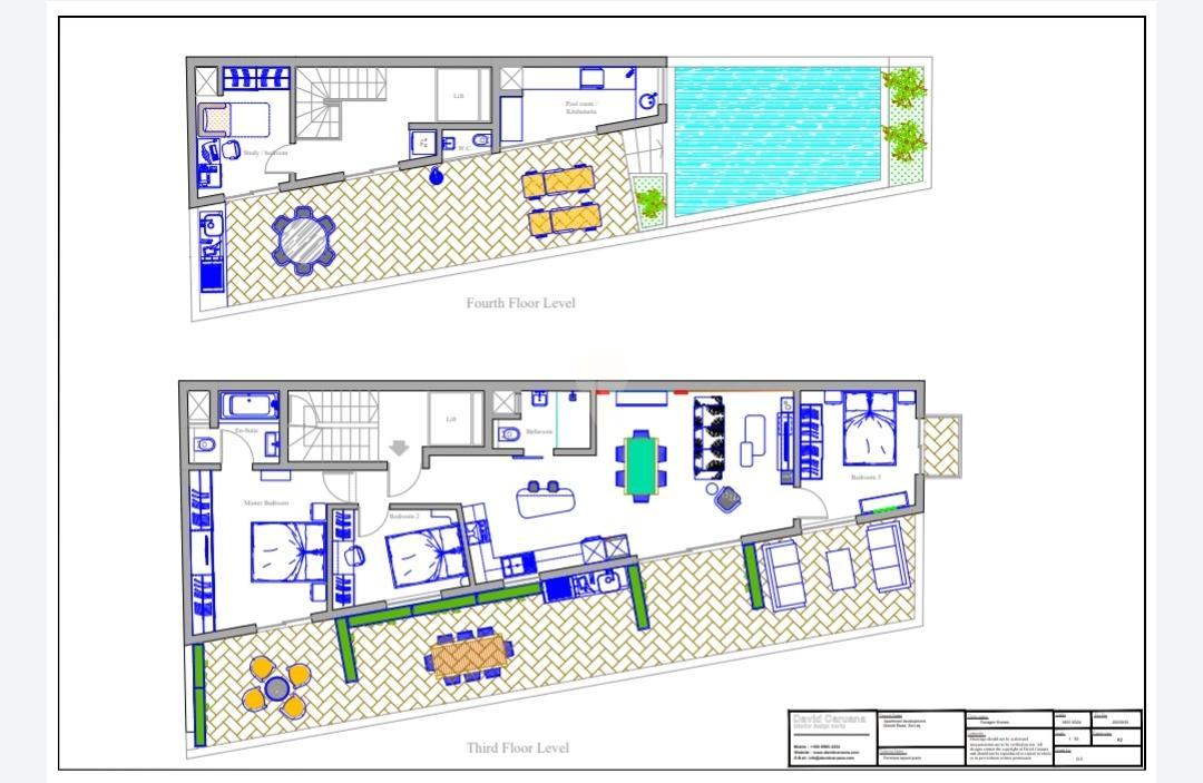 ZURRIEQ - Duplex Penthouse - Indulge in elevated living with this duplex penthouse in Zurrieq, offering stunning country views. The third floor features three bedrooms, including a main bathroom with an ensuite, a guest bathroom, and a spacious open-plan kitchen/dining/living area. A large terrace is accessible from all rooms. The fourth floor unveils a versatile study or fourth bedroom, a laundry space a kitchenette, and a terrace with a pool. Semi-finished, excluding bathrooms and doors. Car spaces are available. Anticipated completion in December 2024.