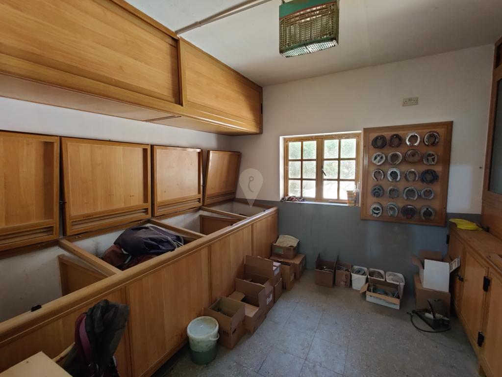 ODZ approximately 5.6 tumuli, the property is dedicated to the art of horse breeding and husbandry, offering a harmonious blend of modern amenities and natural splendor. The centerpiece of this equestrian haven is the main stables, an impressive structure covering 350 square meters. Adorned with ancillary facilities such as a changing room, bathroom, kitchen/office, and bedroom, the stables ensure that both horses and caretakers enjoy a comfortable and efficient environment. Adjacent to the main stables are five additional stables, collectively measuring 200 square meters. These well-appointed structures provide ample space for a select group of horses, emphasizing the commitment to individualized care. For the well-being of the equine residents, the property features a horse hydrotherapy bath—a sophisticated amenity designed to enhance their health and vitality. Complementing this, garages and roofed carports span 150 square meters, providing shelter and storage for essential equipment. Water features on the property include a sizable reservoir and a natural well, securing a sustainable water supply and enhancing the overall self-sufficiency of the ODZ holding.