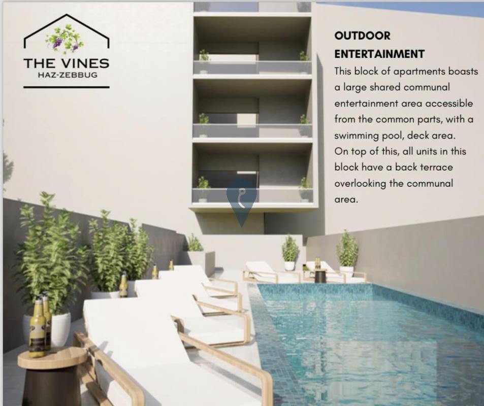 ZEBBUG - New on the market comes this huge 198 sqm PENTHOUSE with AIRSPACE INCLUDED and access to a COMMUNAL POOL. The layout consists of a spacious open plan (K/D/L) which leads onto a front terrace on one side and the sleeping quarters on the other, having three double bedrooms, a utility room, and a main bathroom. The master bedroom comes with an ensuite, a walk-in wardrobe, and a back terrace. This penthouse is being offered finished INCLUDING bathrooms EXCLUDING internal doors. Freehold.