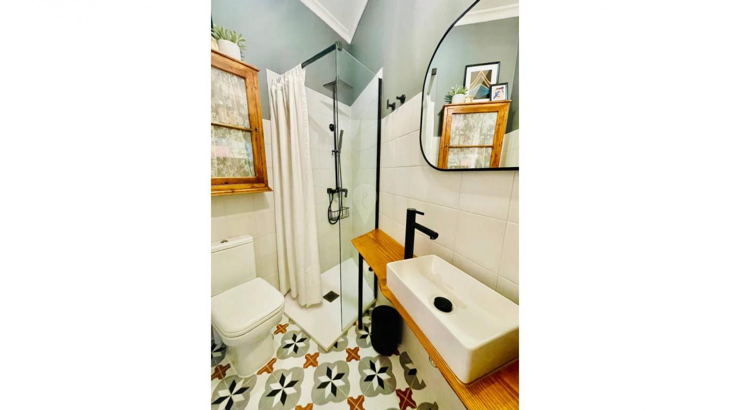 Ascend to the second floor via a spiral staircase with wrought iron railings to find the main bedroom and shower room adorned with exquisite Maltese tiles.