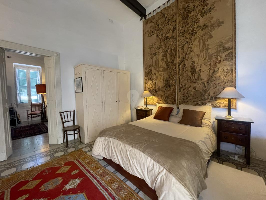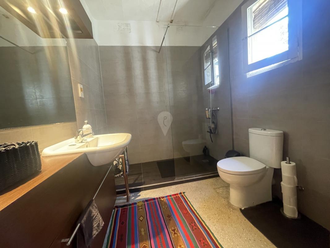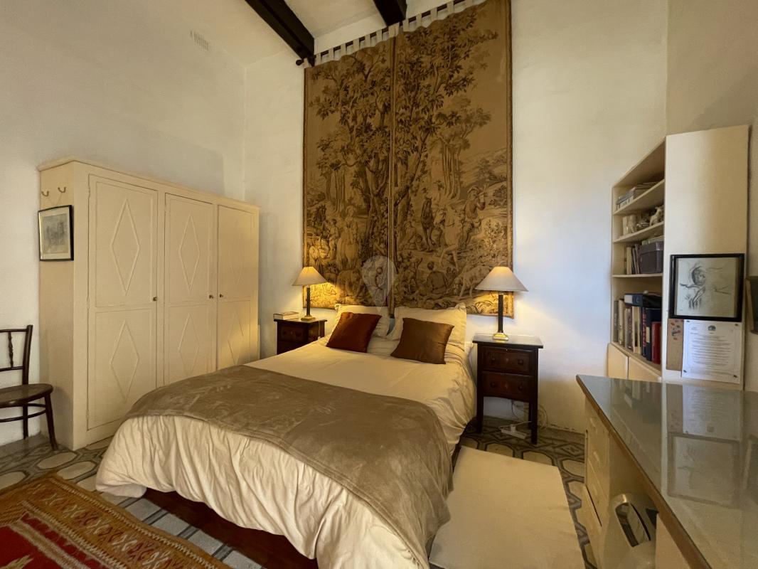 Descending to the ground floor, a wide hallway greets visitors, leading to practical amenities such as a garage and two additional bedrooms, each accompanied by its shower room. Two courtyards, linked by a central covered loggia, infuse the space with a sense of tranquility and intimacy. A hallway seamlessly transitions to the garden, where a dining room opens onto a small sitting area, perfect for intimate gatherings. Completing the ground floor is a well-appointed kitchen, promising culinary delights amidst the charm of this distinguished residence.