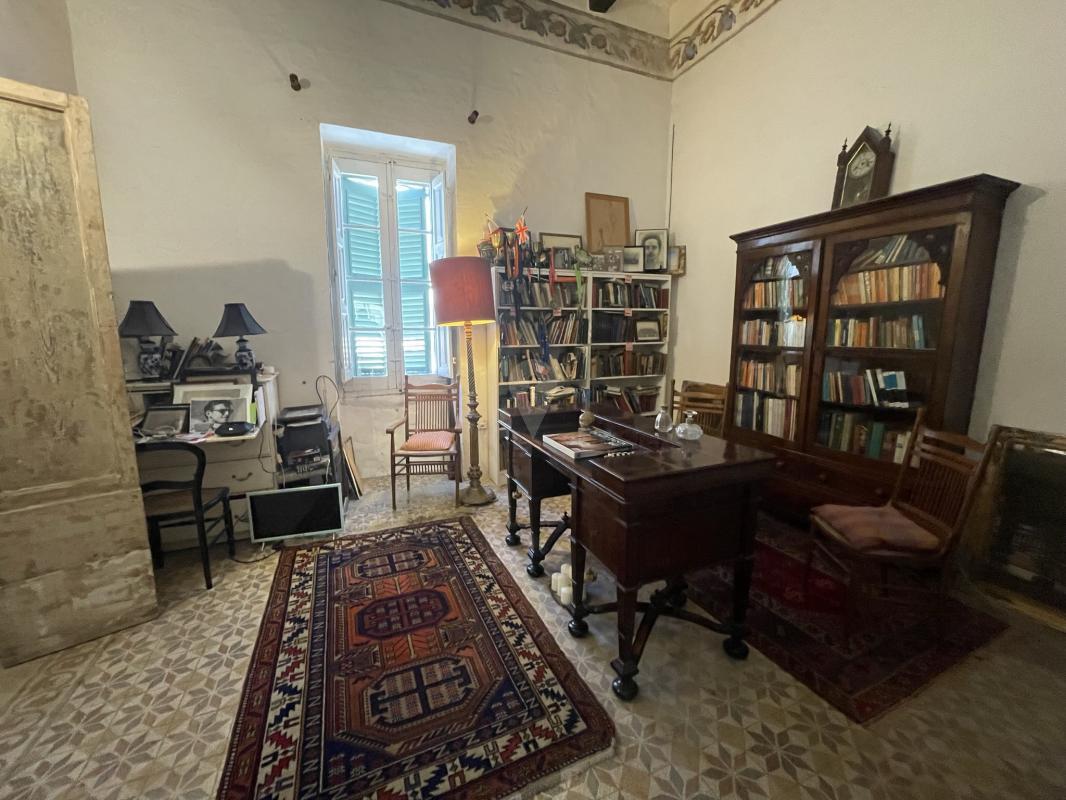 Ascending the grand staircase, one enters the first floor, a realm of comfort and sophistication. Here, four bedrooms await, including a luxurious master bedroom complete with an ensuite bathroom. A cozy study provides a quiet space for reflection, while a gracefully appointed drawing room showcases Maltese balconies, inviting in natural light and picturesque views. A conservatory overlooks two charming courtyards, fostering a seamless connection between indoor and outdoor living. A wide hallway doubles as a sitting room, featuring a veranda that offers panoramic vistas of the verdant garden below.