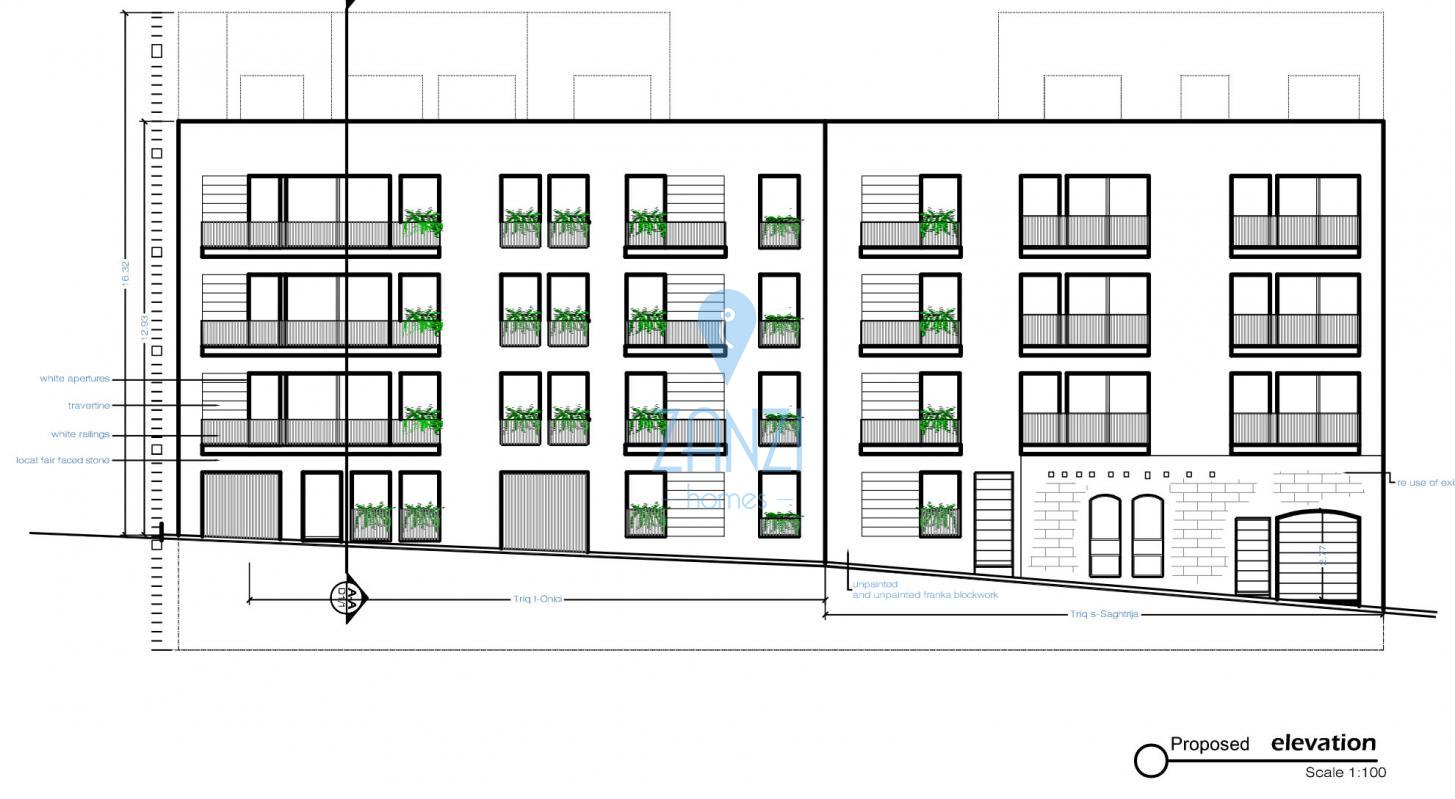 ZEBBUG, Gozo - A new corner development is set in a quiet area of the village. The fourth-floor penthouse is comprised of an open-plan kitchen, dining, and living area, three bedrooms, three bathrooms, and a large corner terrace. Being offered in shell form with finished common parts, lift, and airspace included in the price. Optional garages at basement level. Finishing package on request. Freehold.