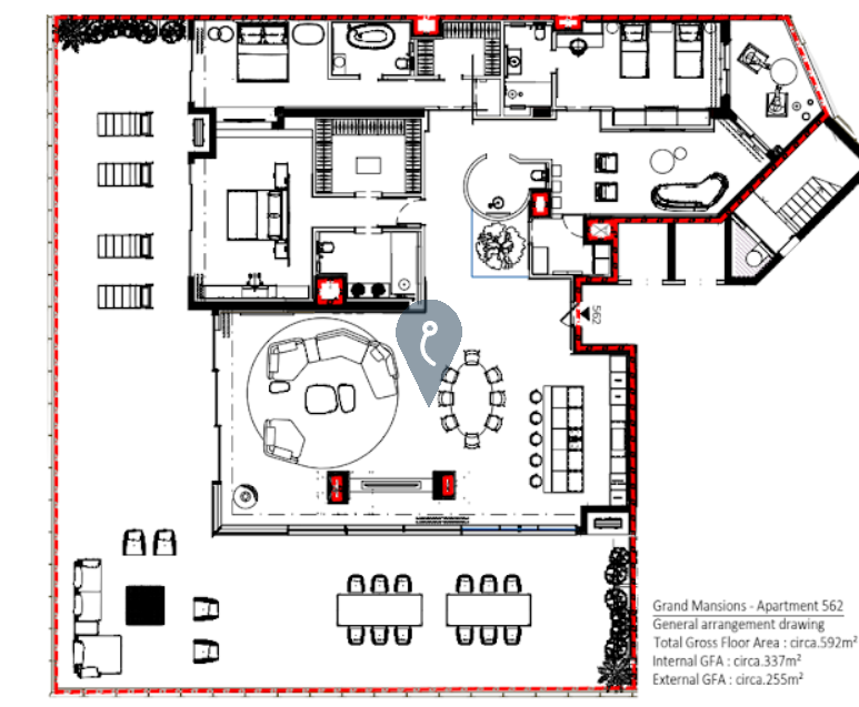On average, the units in the Royal Mansions have an area of 220 sqm, while those in the Grand Mansions have an area of up to 330 sqm. The layout, views, and prices of each unit differ from one another.