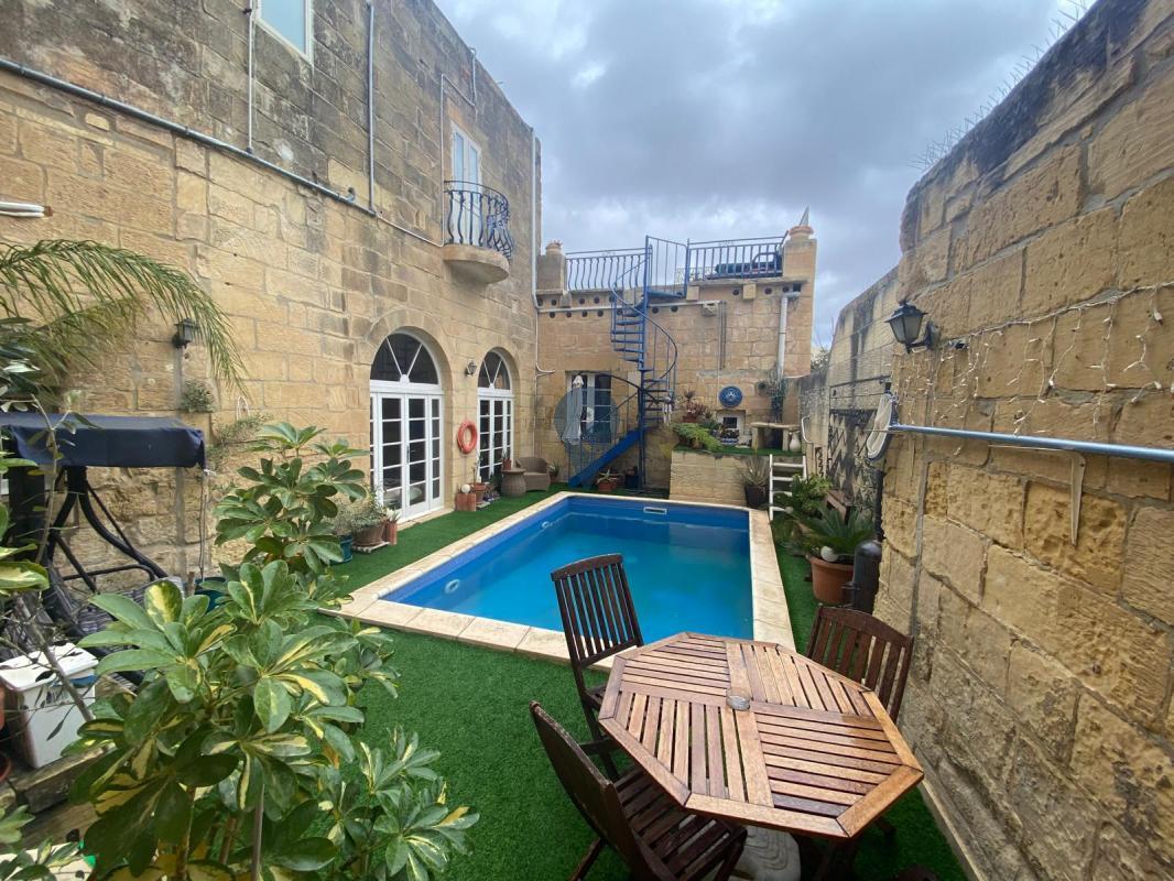FONTANA, Gozo. Discover the character and charm of this converted home of character, blending the traditional features with contemporary style, creating a family home within walking distance of the school, shops, and major amenities. A good-sized swimming pool three bedrooms and five bathrooms kitchen living and dining area. This property is installed with gas central heating air conditioning, solar panels for electricity, and much more.