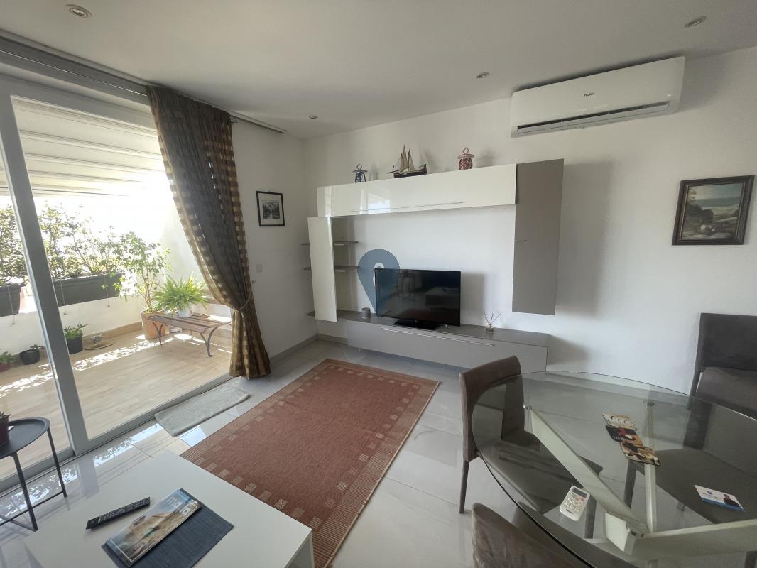 MSIDA - Here we have a tastefully furnished one-bedroom penthouse on the seventh floor, built in 2021 served with a lift. The property is being offered with a rental agreement secured for the next year, having a 5% ROI! The entrance hall leads you to the main bedroom, bathroom/washroom, and an open plan kitchen/living dining room with its private terrace ideal for barbecues or entertainment.
