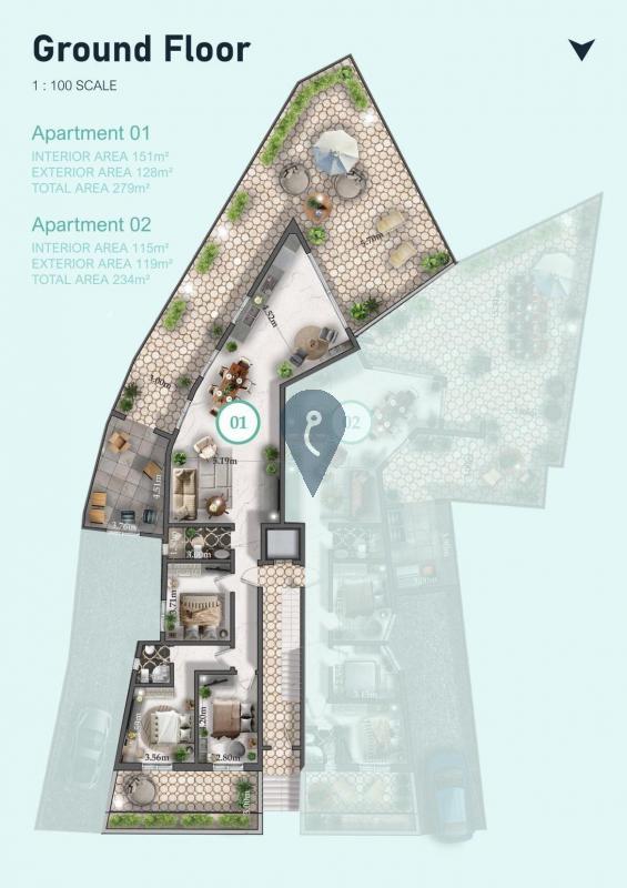 XLENDI, Gozo - New high-end development enjoying side sea views. Ground floor unit comprising an open plan kitchen/dining/living area, three bedrooms, two bathrooms, front terrace, and a large back yard. Being offered in shell form with finished common parts. Optional garages at basement level. Finishing packages available on request. Freehold.
