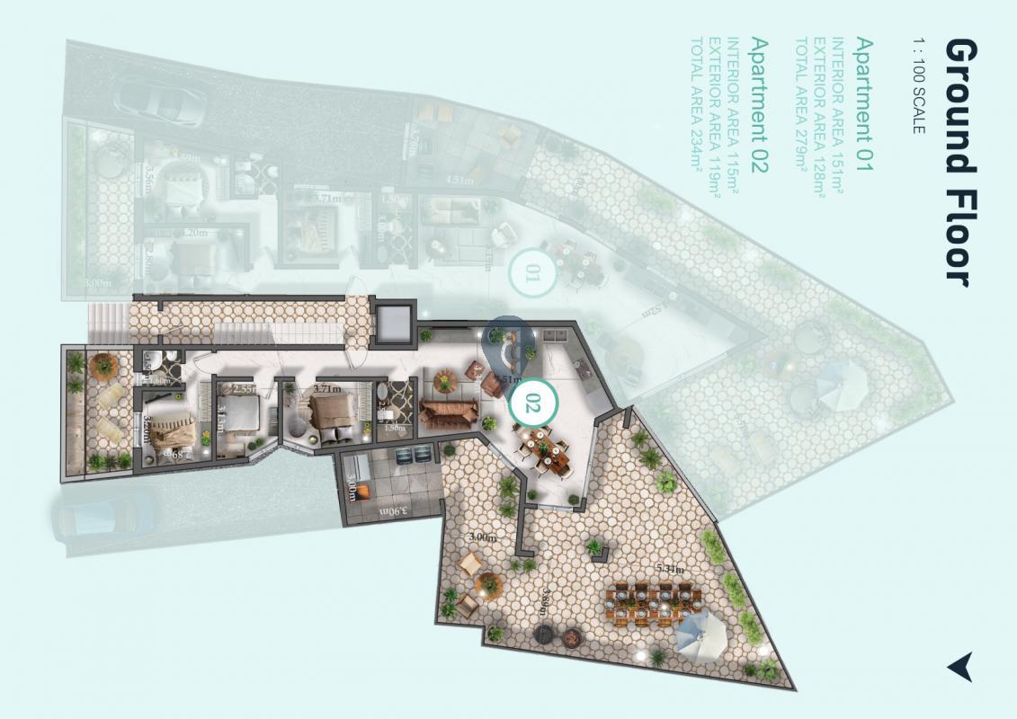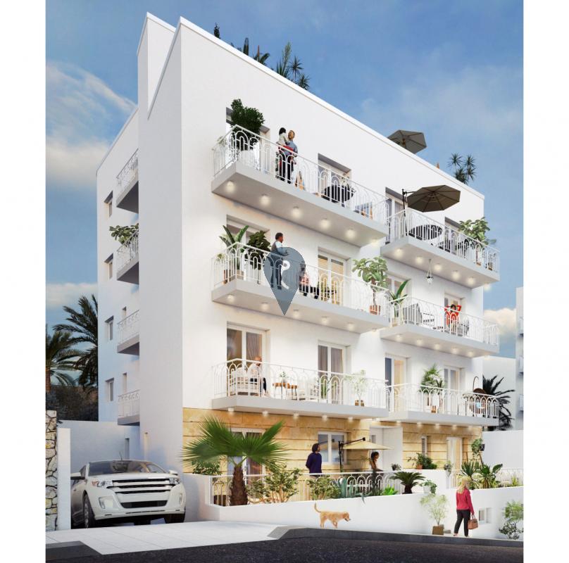 XLENDI, Gozo - New high-end development enjoying side sea views. Ground floor unit comprising an open plan kitchen/dining/living area, three bedrooms, two bathrooms, front terrace, and a large back yard. Being offered in shell form with finished common parts. Optional garages at basement level. Finishing packages available on request. Freehold.