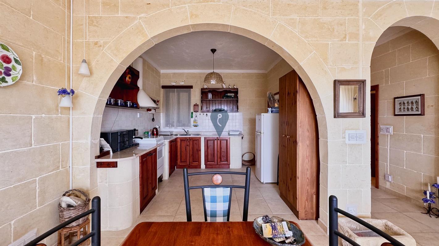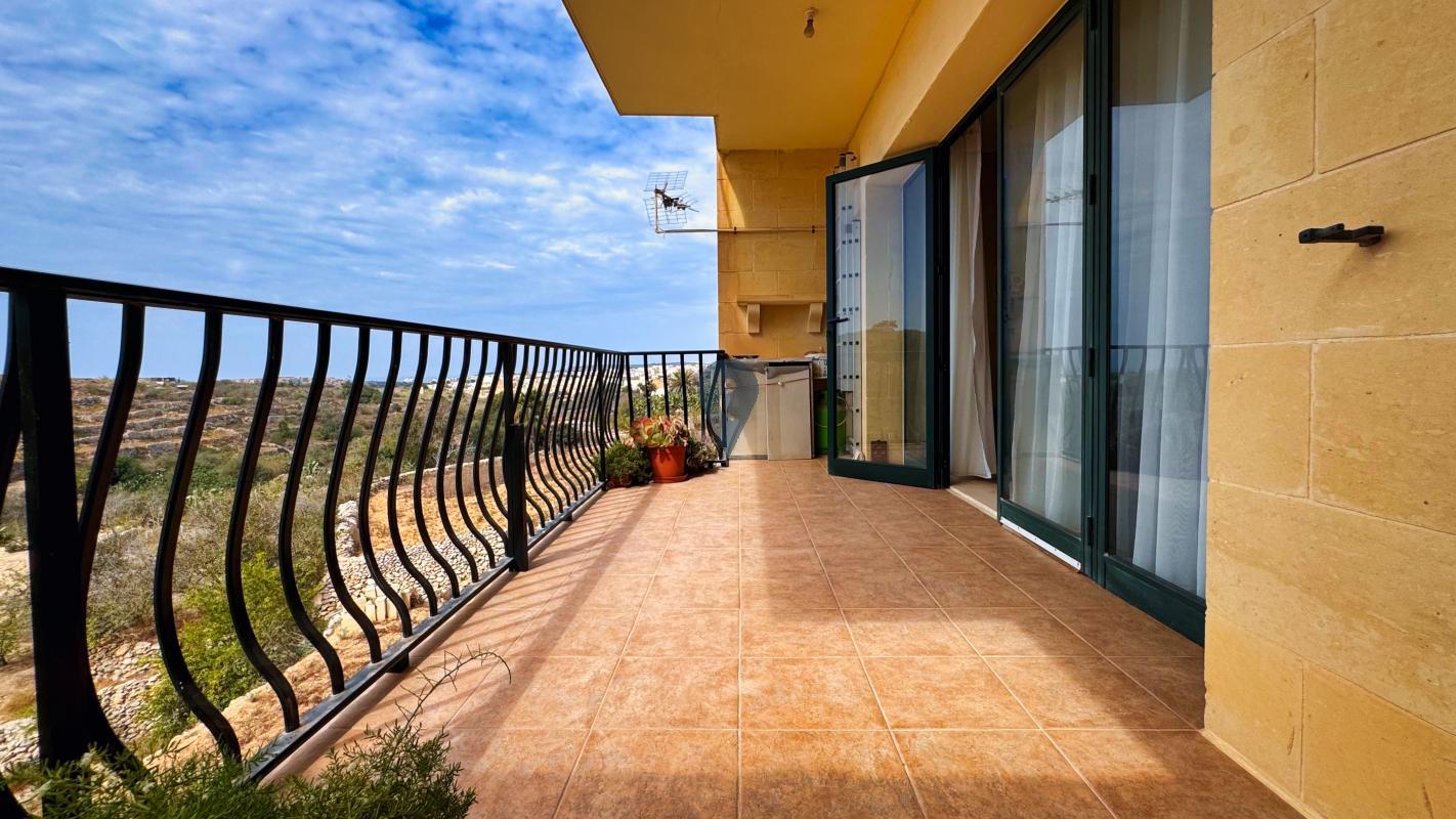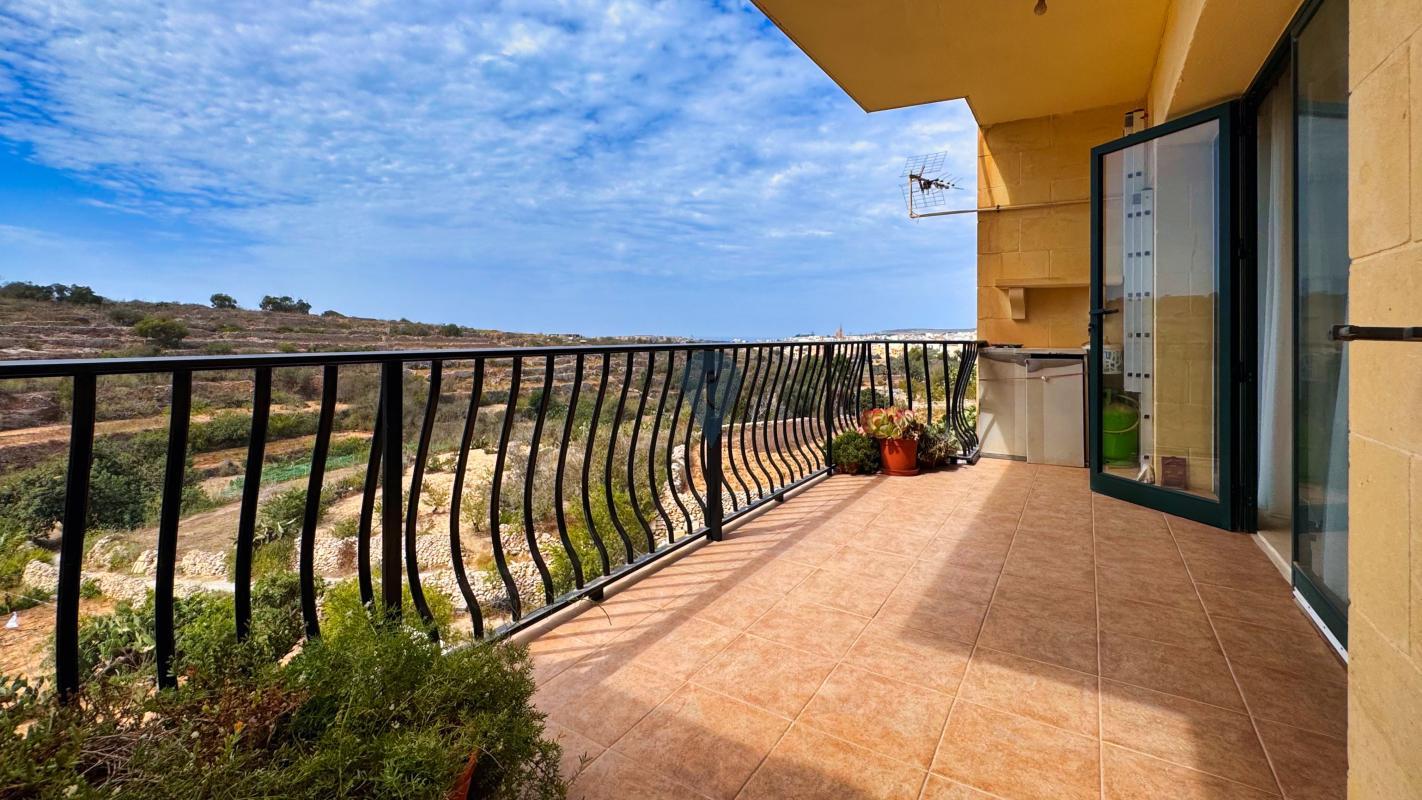 QALA, Gozo - Introducing a stunning, fully furnished, and move-in-ready ground-level apartment with two double bedrooms, two bathrooms (one with a shower and another with a tub), an arched kitchen opening to the dining and living area, and a large back terrace with open valley views. Located in a charming limestone block of four units, this 150 sqm property includes a car space. Bright, spacious, and in great condition, it would make a great family home, holiday retreat, or rental investment.