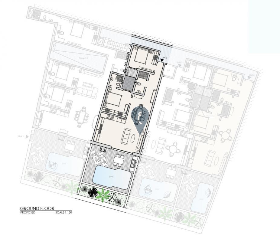 SANNAT, Gozo - New exclusive development at the edge of the development zone enjoying open country views. The ground-floor unit comprises an open-plan kitchen/dining/living area overlooking the private swimming pool and deck area, two bedrooms, two bathrooms, and an internal yard. Being offered in shell form with finished common parts and served with lift. Optional garages at basement level. Finishing package on request. Freehold.
