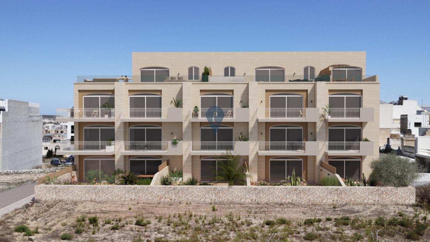 SANNAT, Gozo - New exclusive development at the edge of the development zone enjoying open country views. The ground-floor unit comprises an open-plan kitchen/dining/living area overlooking the private swimming pool and deck area, two bedrooms, two bathrooms, and an internal yard. Being offered in shell form with finished common parts and served with lift. Optional garages at basement level. Finishing package on request. Freehold.