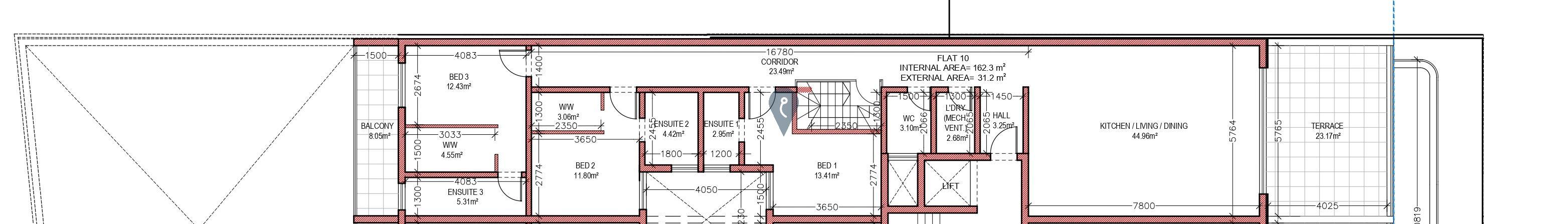 MOSTA - A spacious and charming fourth-floor duplex penthouse situated in the heart of Mosta. This property boasts three bedrooms, all of which include an en-suite bathroom, two of which include a walk-in wardrobe, a separate guest bathroom, a laundry room, and an open-plan kitchen, living, and dining area, complemented by both a front and a rear terrace. In the second level, one can find a roof terrace with a pool and space for entertaining. Airspace included. Construction is set to begin in May 2025, with the penthouse being offered finished, excluding bathrooms and internal doors, by December 2026. Optional lock-up garages available.