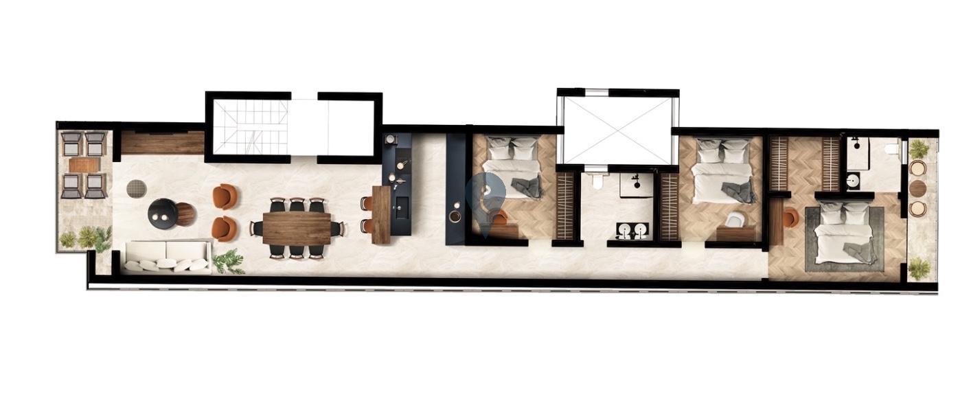 Each apartment and maisonette is designed with spacious, open-plan layouts that maximize natural light and create a seamless flow between living, dining, and kitchen areas. High-quality finishes, contemporary design, and large windows offer ample natural light, while the penthouses elevate luxury living with expansive terraces, ideal for outdoor relaxation and entertaining.