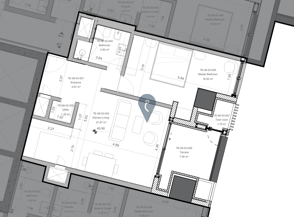 The shared reception area is thoughtfully divided into two entrances, providing direct drop-off access to both the East and West Towers. Inside, residents are welcomed by an expansive lobby featuring a sculptural natural stone reception desk and full concierge service. Each home begins with a grand timber doorway, leading into interiors designed for enduring sophistication, comfort, and functionality. Open-plan kitchens, dining areas, and living spaces promote effortless flow, enhanced by intelligent LED lighting systems. Bedrooms have been carefully designed as serene retreats, each one offering panoramic views, while bathrooms feature underfloor heating, refined tiling, bespoke counters, mirrors, and heated towel rails.