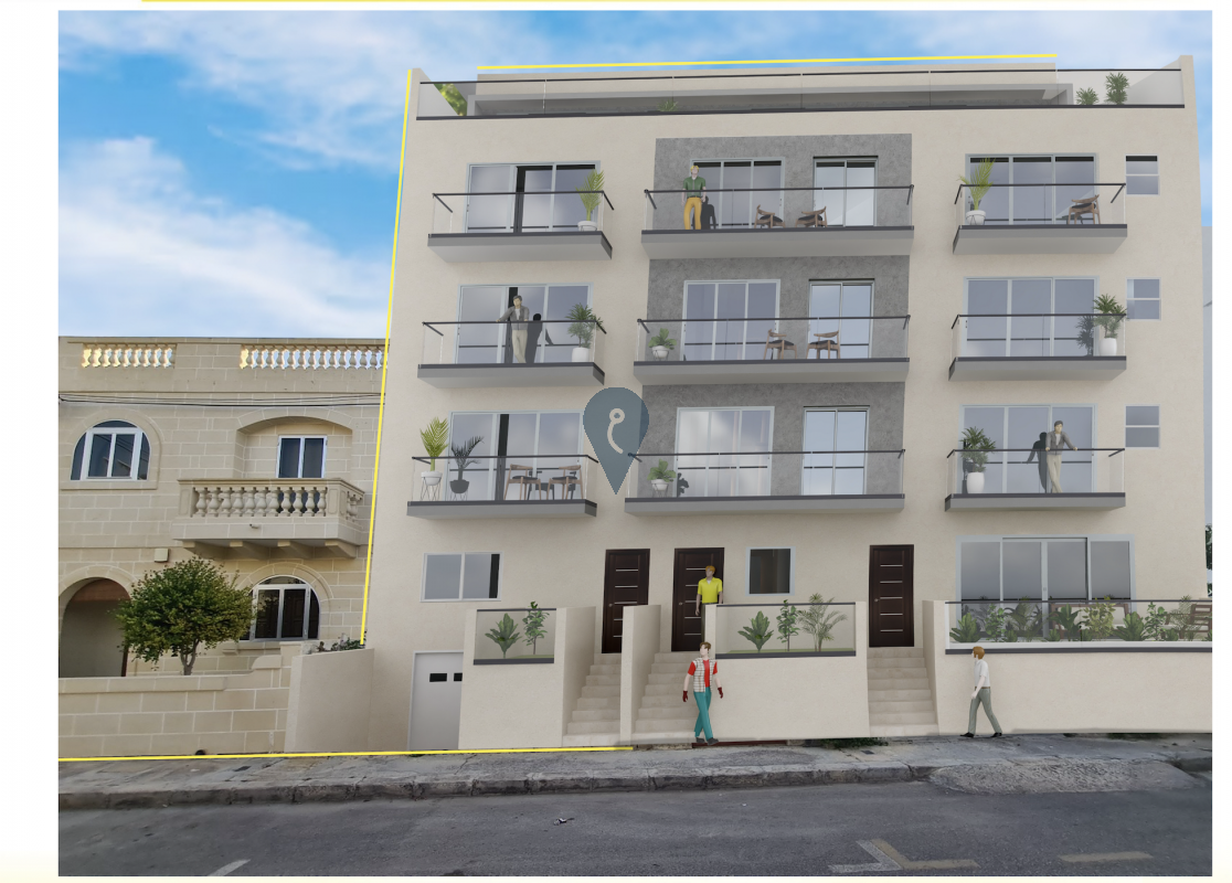 TARXIEN - A DUPLEX Two-bedroom apartment split on the FIRST & the SECOND floor, This apartment forms part of a block of ten units. The layout of the lower (FIRST) floor consists of an Open Plan Kitchen/Living/Dining area (Approx. 43SQM) leading onto a front balcony and a bathroom. Both double bedrooms and another bathroom are on the higher (SECOND) floor. The property is estimated to be complete by June 2026 and is being offered in a semi-finished state (excluding Bathrooms & internal doors). The property is Freehold and optional garages are available.