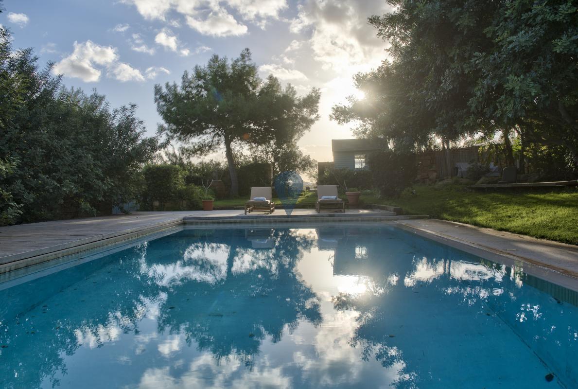 The outdoor spaces are the true highlight of the property, featuring not one but two large swimming pools, spacious decking areas, and designated lounge and dining spaces ideal for outdoor entertaining. Additional features include multiple charming living cabins scattered throughout the gardens, a water reservoir, a tool shed, a 5,000 sqm organic garden, and a private driveway offering convenient access.