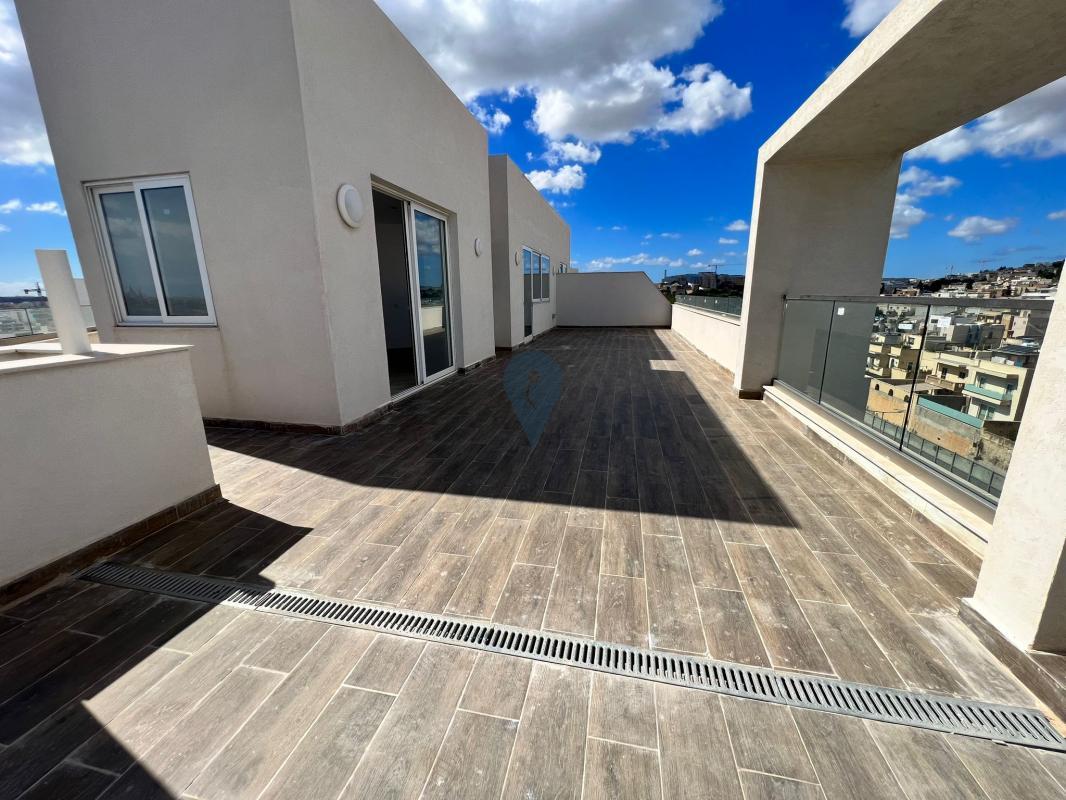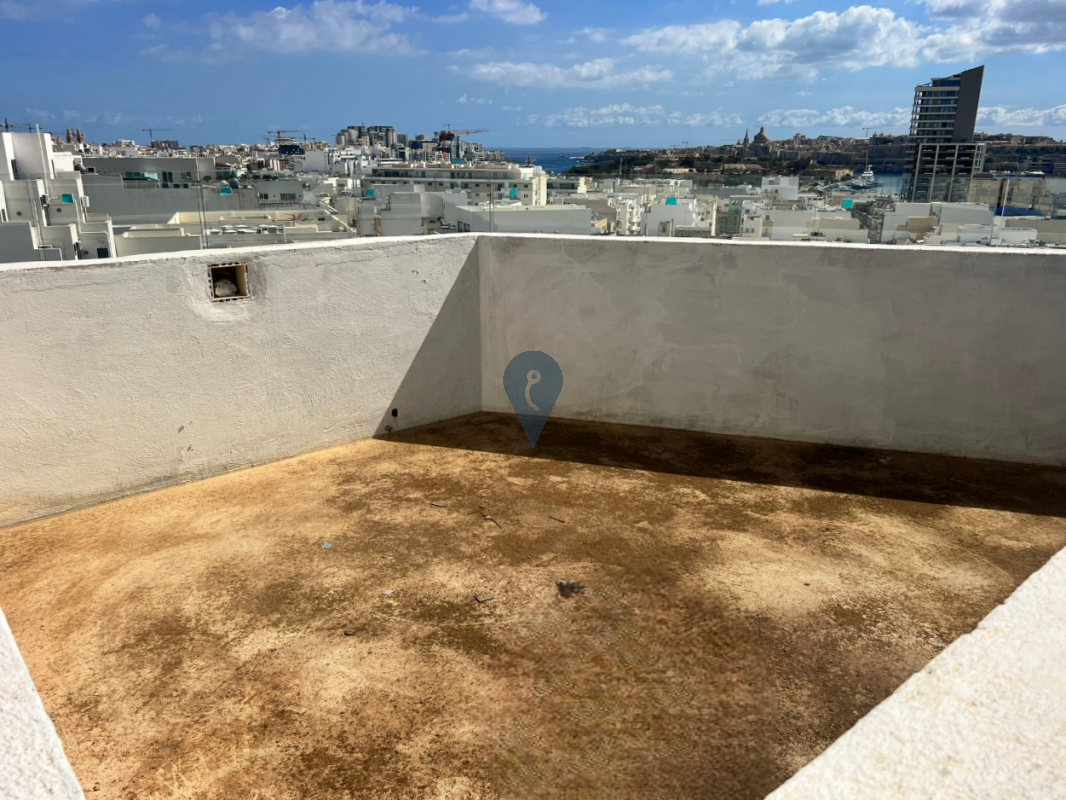 GZIRA - Located close to all amenities is this large penthouse. Layout in the form of an open plan, kitchen, living, dining, three bedrooms, main with ensuite, guest bathroom, and laundry room. Complimenting this property is a large terrace with a splash pool, enjoying distant sea views. The property is being offered finished, including bathrooms, doors, and air conditioners. Airspace is included. An optional interconnected garage is also available. Freehold.