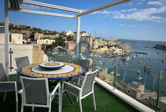 Welcome to a sanctuary of coastal splendor in this stunning penthouse, where every detail reflects sophistication and every corner unveils breathtaking views of the vast Mediterranean Sea and the charming Marsaskala harbor. Designed for those who appreciate the finer things in life, this residence effortlessly combines elegance and comfort, offering a perfect setting to relax and entertain.