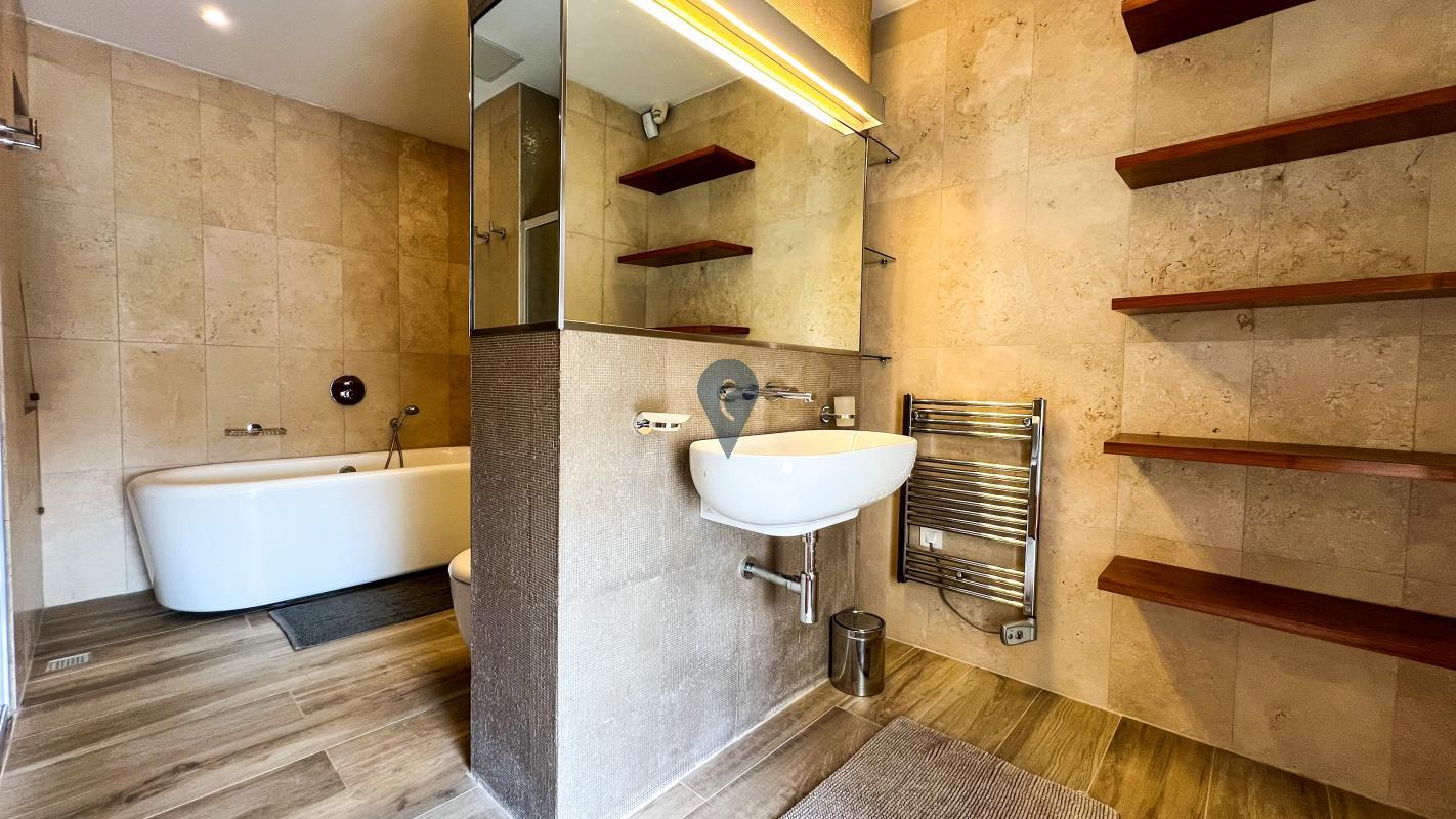 The private wing houses three luxuriously appointed bedrooms, each a retreat unto itself with its own ensuite bathroom. The master suite elevates everyday living with its generous proportions, walk-in wardrobe, and lavishly finished bathroom. A guest powder room, dedicated server room, and utility space complete the thoughtful floor plan.