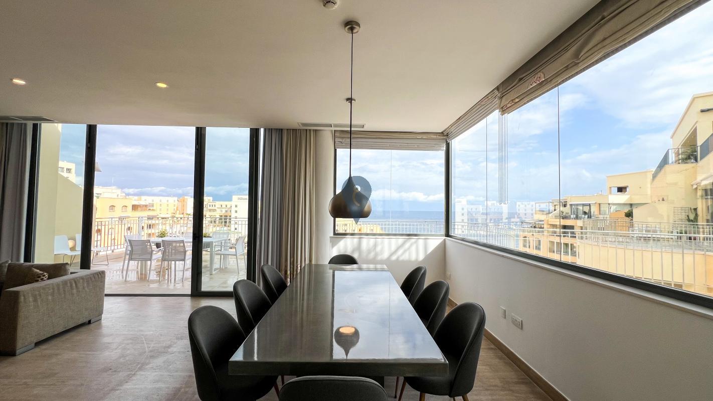 Bathed in natural light, the generously proportioned living spaces showcase thoughtful design at every turn. The grand reception area creates an immediate sense of arrival, flowing seamlessly into an elegant living and dining space where sweeping sea views take center stage through walls of glass. The separate kitchen provides a perfect balance of functionality and style, ideal for those who love to entertain. Step outside onto any of the expansive terraces to experience al fresco living at its finest. These carefully crafted outdoor spaces offer multiple areas for lounging, dining, and entertaining, all while enjoying the dramatic panorama of Malta's coastline. The generous dimensions of the main terrace present endless possibilities for creating your perfect outdoor oasis.