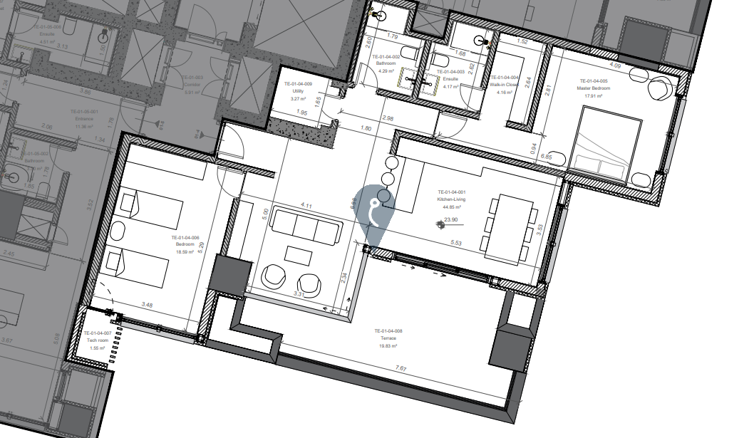 Two Spacious Bedrooms: Including a master suite with an en-suite bathroom, offering privacy and comfort.