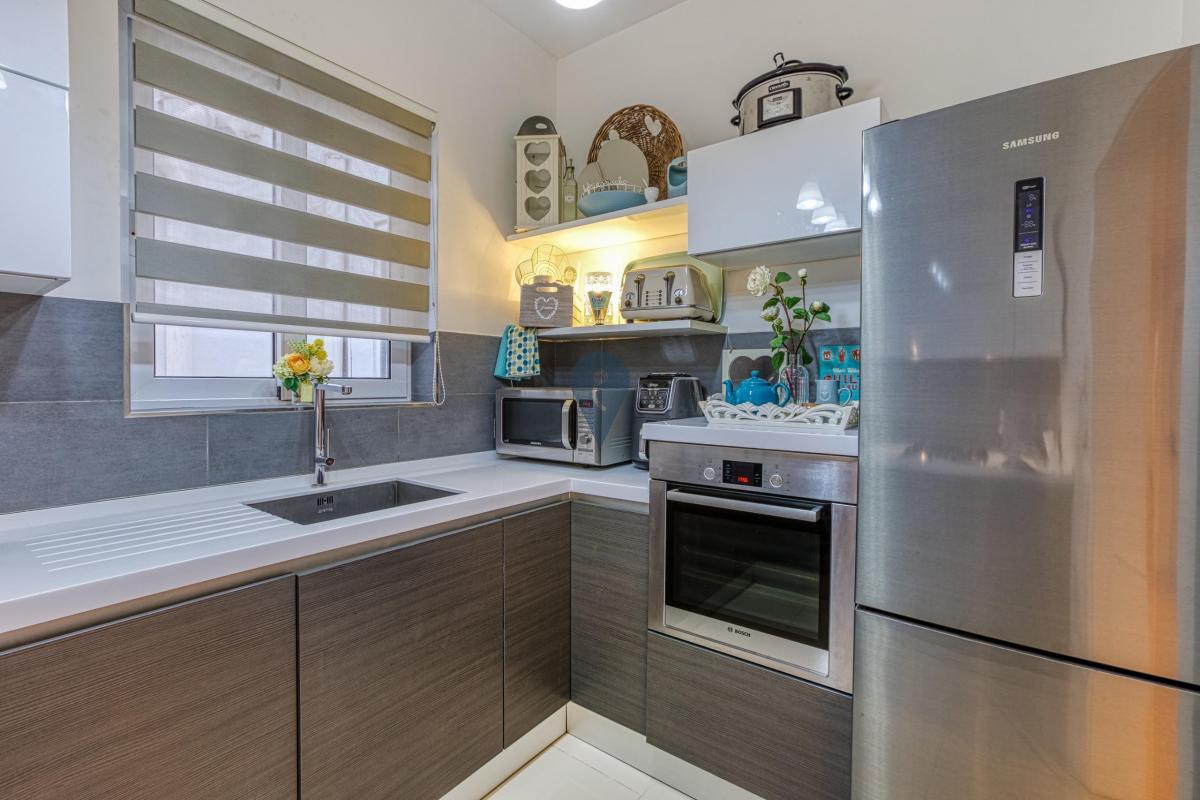 BUGIBBA - A three-bedroom apartment. Freehold. Larger than usual, double-fronted, designer-finished, three-bedroom apartment. The property is located on the first floor and forms part of a block of only six units. It is located in a pedestrian area in the heart of Bugibba, just a few meters away from the square, and close to all amenities. The gross internal area is 125 sqm and the total area is 156 sqm. This property also comes with the use of a roof.