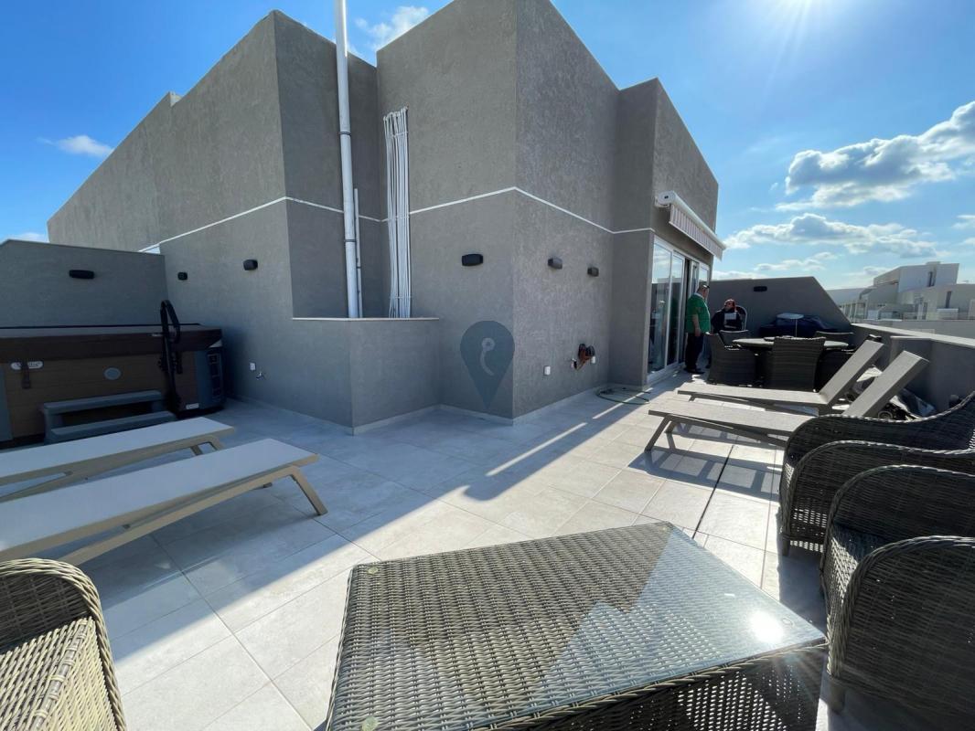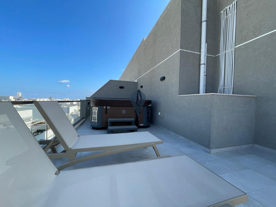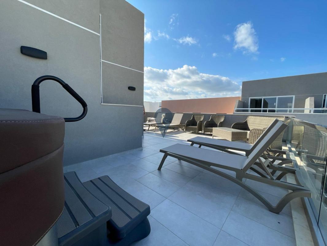 San Gwann - New on the market is this stunning corner Duplex Penthouse including its Airspace. The property may be accessed from two different levels however has an internal staircase. Entering at the upper levels one enters into a lovely open Kitchen/Living/Dining area which leads onto a fantastic Terrace measuring 60sqm furnished with great outdoor furniture, BBQ, and a Jacuzzi. The lower level has two double bedrooms both with bathrooms, main has its ensuite and walk-in wardrobe.