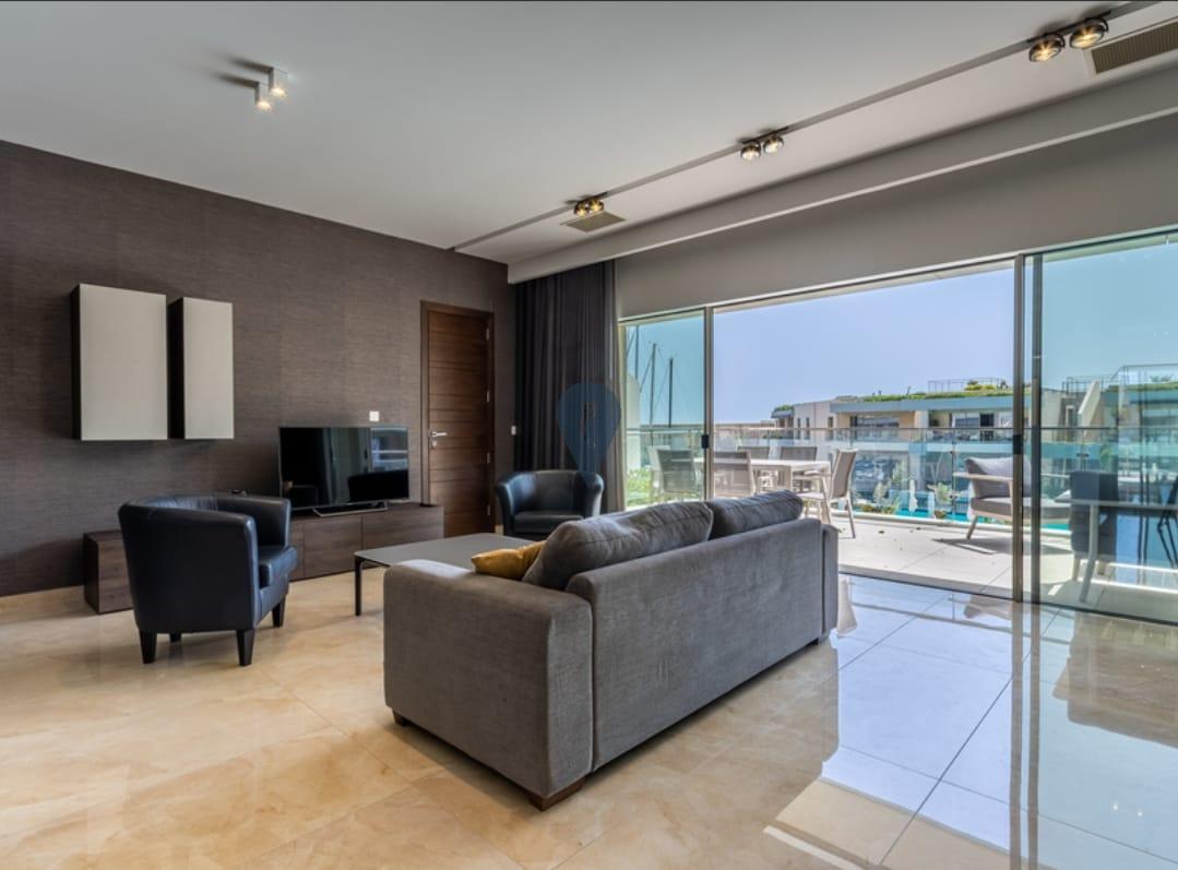 Discover refined living in this exquisitely finished and fully furnished 166 sqm two-bedroom waterfront apartment located within the prestigious Laguna development at Portomaso. As an exclusive extension of the renowned Portomaso residential complex, this development offers unparalleled access to a private lagoon, where residents can enjoy direct water access from their decks.