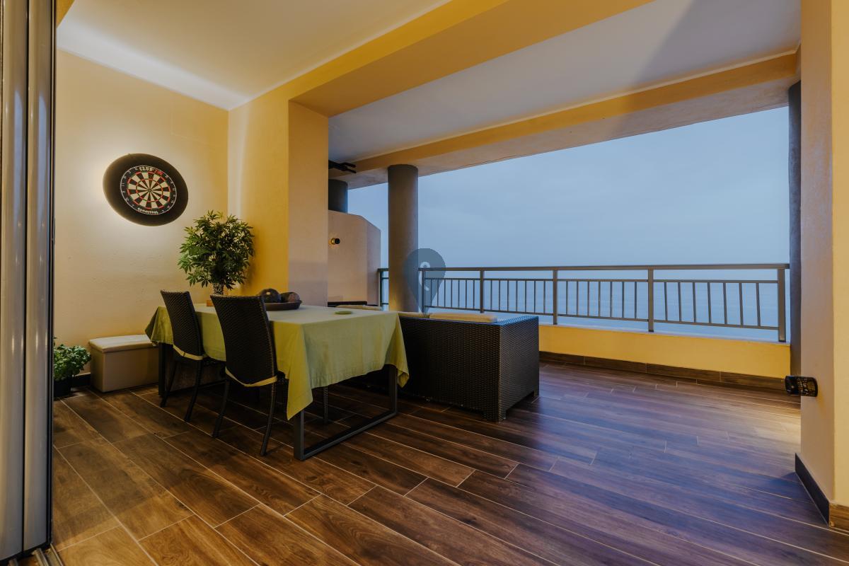 Offering exceptional privacy and spectacular views, this superb apartment opens into a bright entrance hall that leads seamlessly to a formal dining area and a spacious living room, with a dedicated study corner. Large sliding doors connect the living space to a generous front terrace with uninterrupted sea views. The home is enhanced by premium furnishings, including a bespoke Poltrona Frau desk crafted from natural stone and wood with an elegant leather finish, refined Rimadesio doors, stylish Calligaris pieces, and durable Kartell table and chairs.