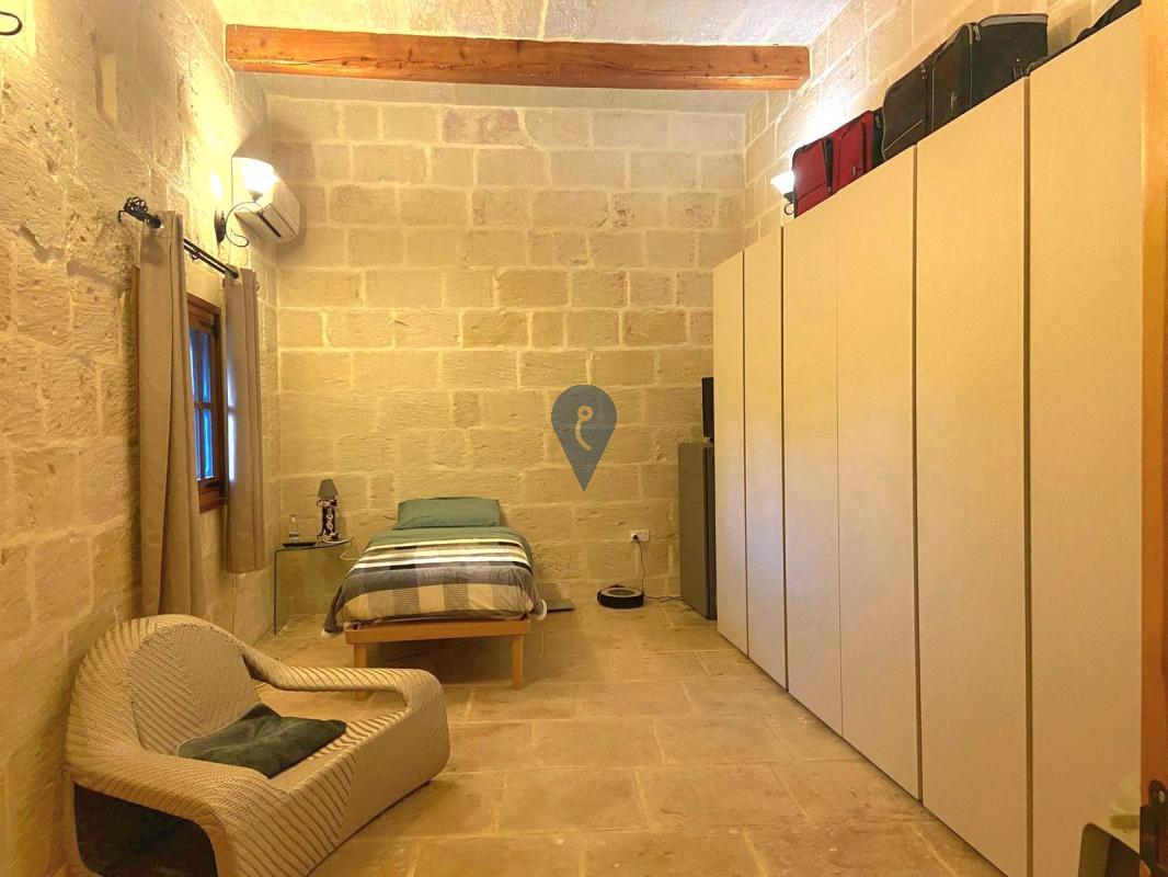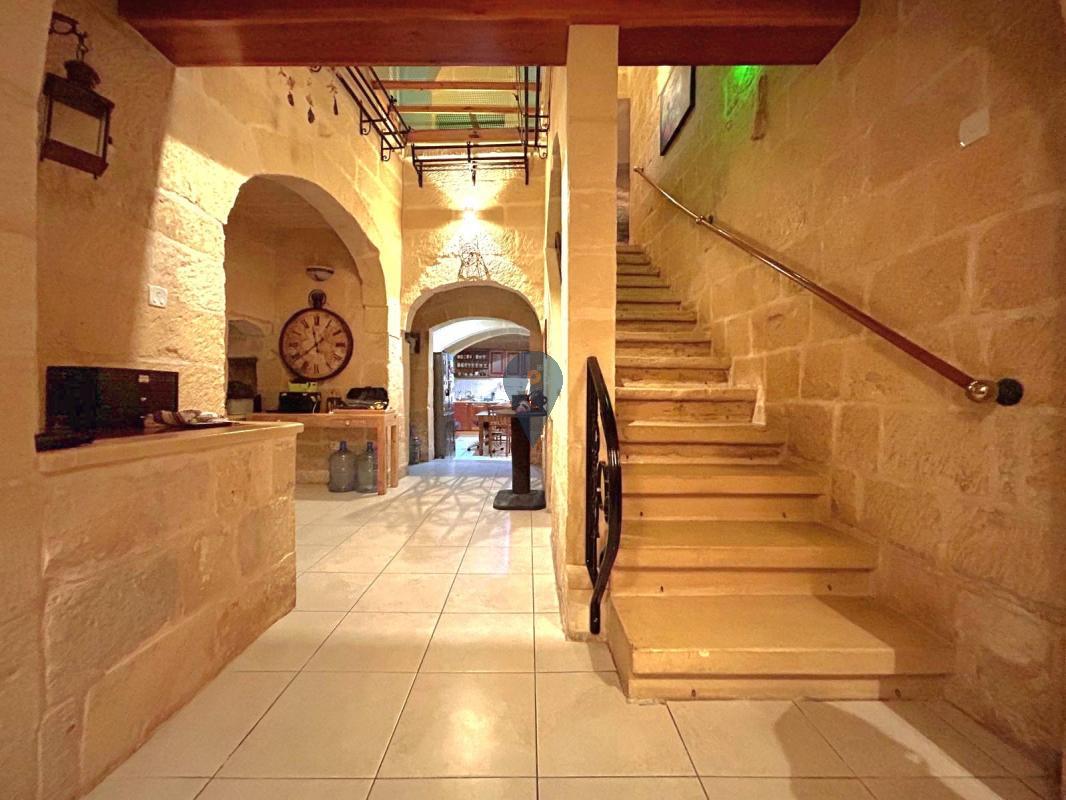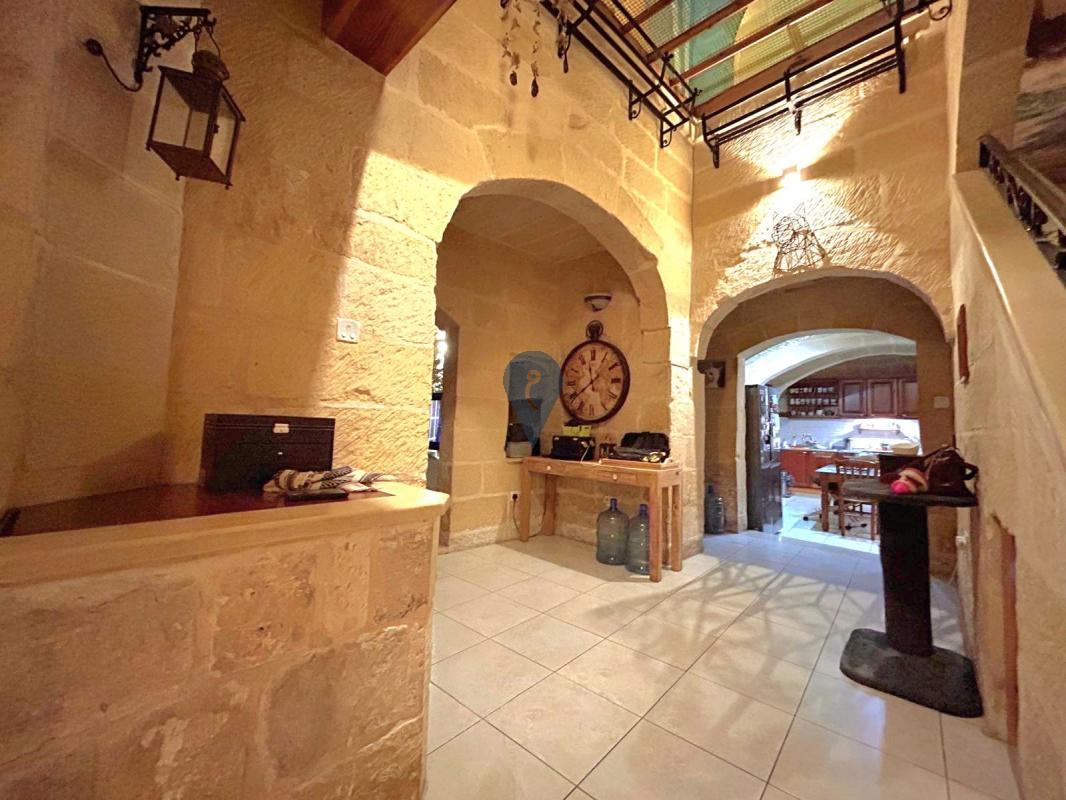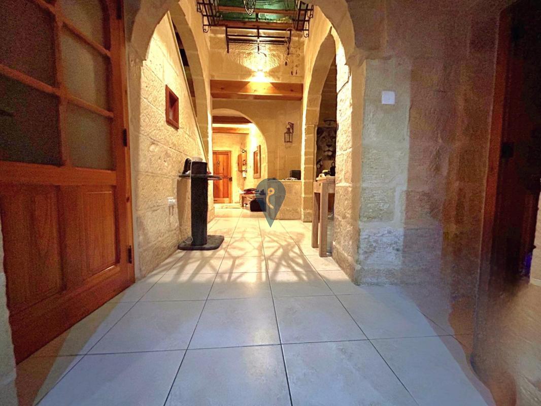 LUQA - A beautiful house of character located in UCA and surrounded by gardens, full of Maltese characteristics such as xorok, arches, and well-maintained limestone. This is a three-bedroom with two bathrooms, a kitchen/living room, a separate dining area, an office, a good-sized washroom, a roof, and airspace. Complimenting this property are two two-car garages, a storage at semi-basement, 12 solar panels, and a solar water heater. To make this property complete with full natural light, there is a large skylight at the center of the entrance. Freehold.