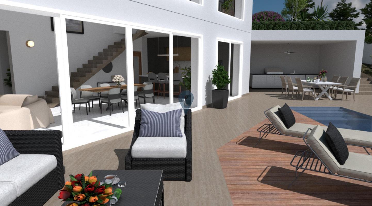 Set on a spacious 950sqm plot, the villa is designed for contemporary open-plan living. The kitchen, living, and dining areas are seamlessly integrated with the outdoor spaces, where a private pool, sun deck, BBQ area, and lounge space create the perfect setting for both entertaining and relaxation. The home also features a pantry, games room, and multiple storage areas, ensuring maximum convenience and functionality.