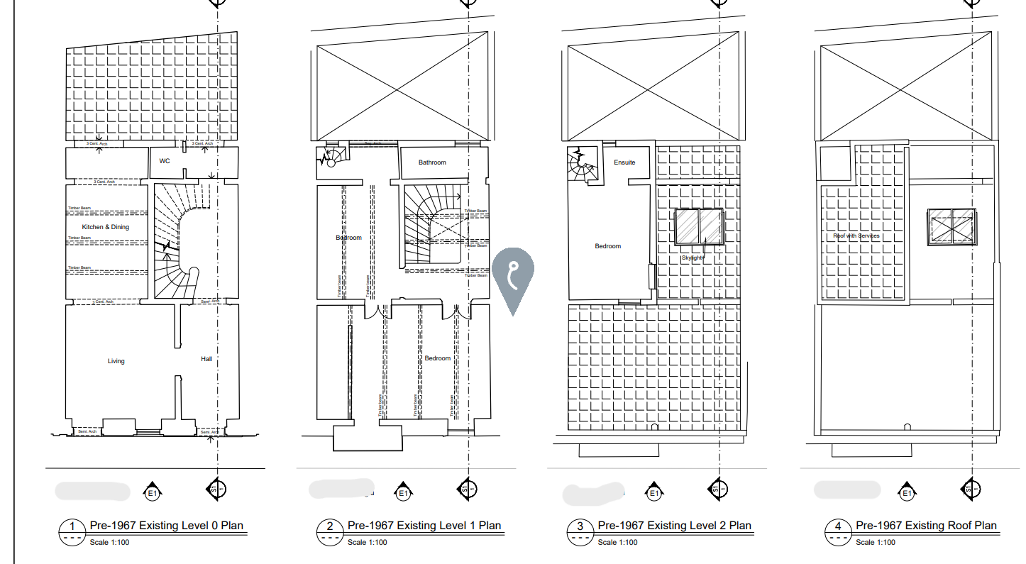 On the ground floor, a welcoming hallway leads to a study or library area and a guest toilet. Further in, the space opens into a generous open-plan kitchen, living, and dining area, which extends onto a rear terrace. This outdoor area offers great potential to be transformed into a peaceful oasis ideal for entertaining or relaxing.