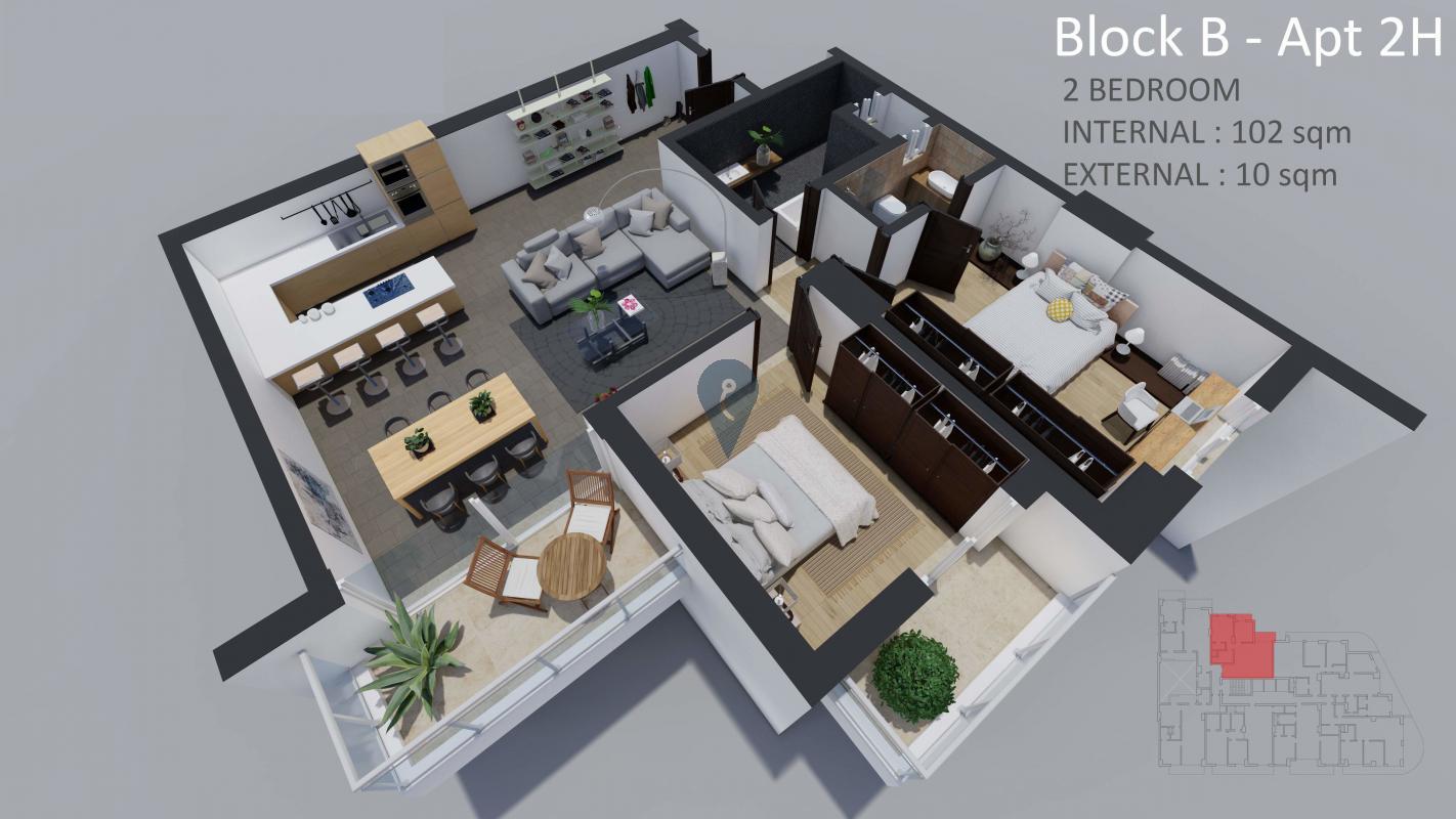 MARSALFORN, Gozo - New Luxurias development in a prime SDA area just off Marsalforn seafront. Seventh-floor apartment comprising an open-plan kitchen/dining/living area next to a good-sized front terrace, two bedrooms, two bathrooms, and a back terrace. Being offered finished excluding internal doors, bathrooms, and balcony railings, finished common parts, and served with a lift. Public parking facility available. Optional car spaces at the basement level. Freehold.