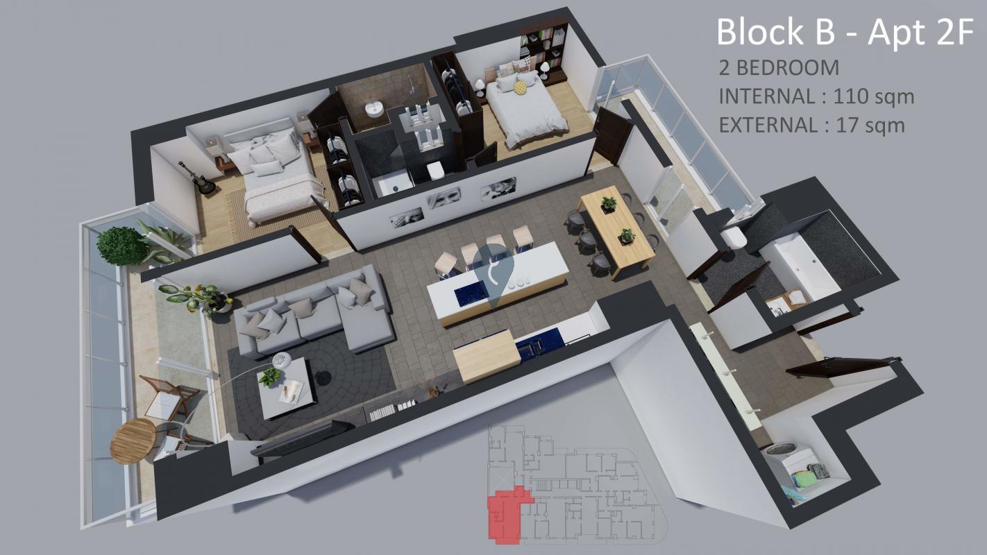 MARSALFORN, Gozo - New Luxurias development in a prime SDA area just off Marsalforn seafront. Eight-floor apartment comprising an open-plan kitchen/dining/living area next to a good-sized front terrace, two bedrooms, three bathrooms, and a box room. Being offered finished excluding internal doors, bathrooms, and balcony railings, finished common parts, and served with a lift. Public parking facility available. Optional car spaces at the basement level. Freehold.