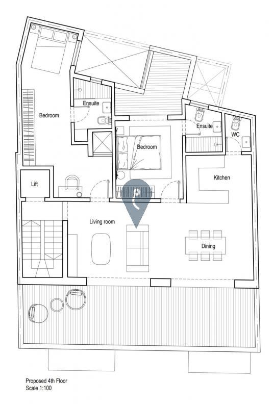 FGURA - In a very residential area comes this small block of only four units served with a lift. This penthouse consists of an open-plan Kitchen/ Living/ Dining leading to a front terrace ideal for entertaining. Two nicely sized double bedrooms both with their own en-suite, a guest toilet, and a back terrace. This unit is being offered freehold and in shell form with optional finishings at an extra cost. This block should be built until the first term of 2027.