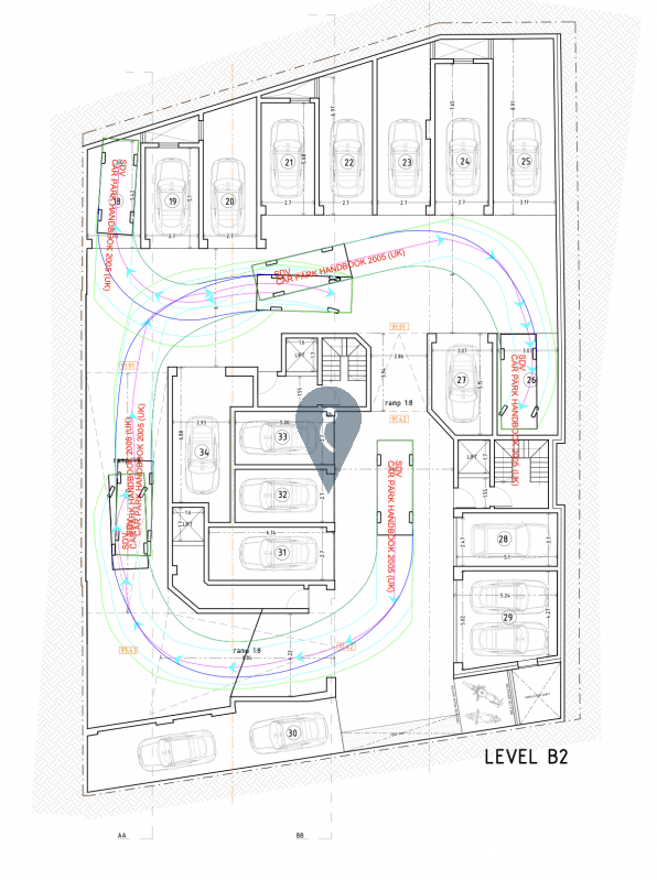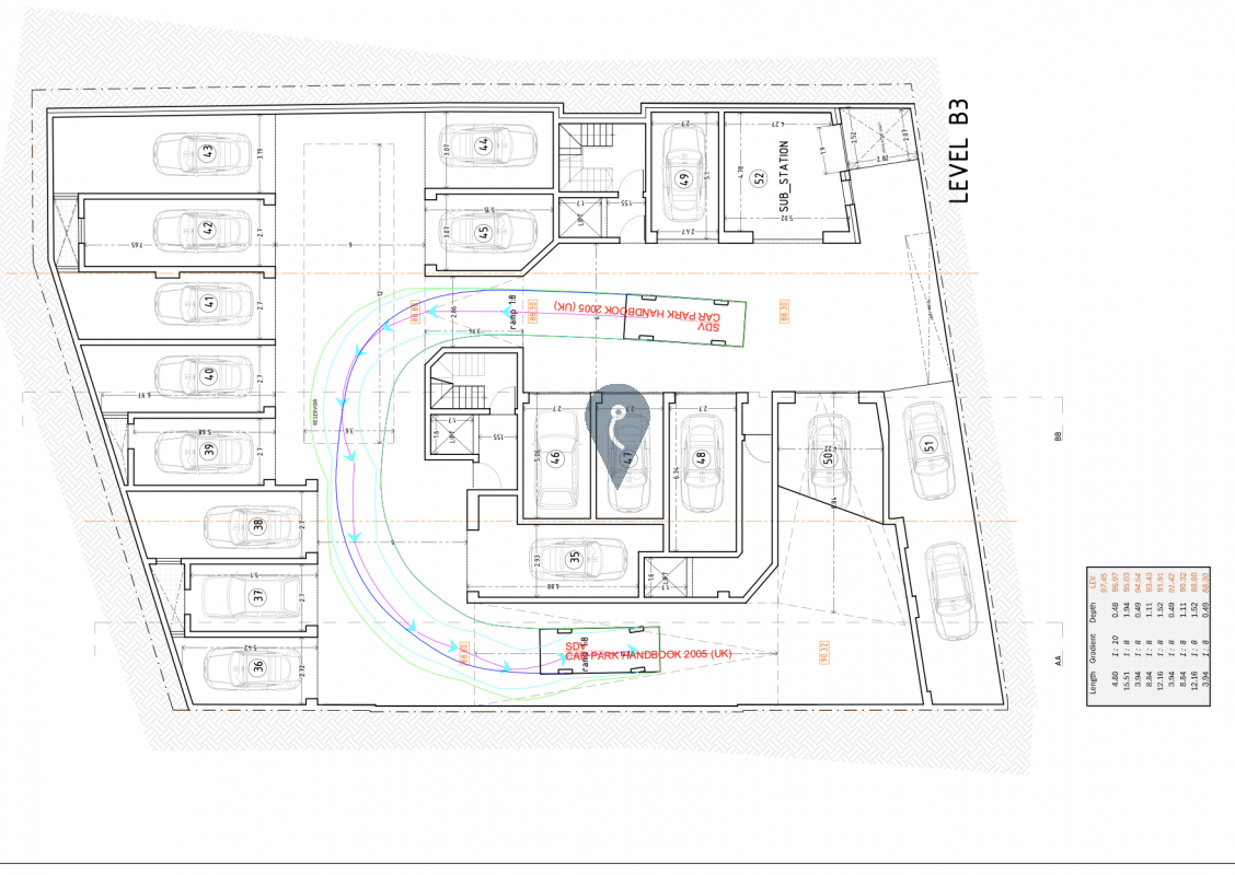A range of lock-up garages is available in a brand-new residential development, offering secure parking and storage solutions. Garages are interconnected with the main residential block, providing direct access across levels "minus one" to "minus three".