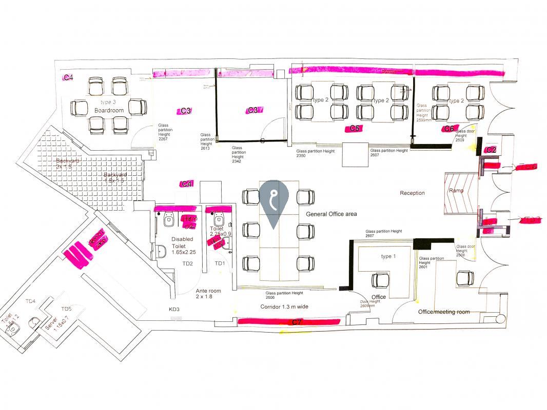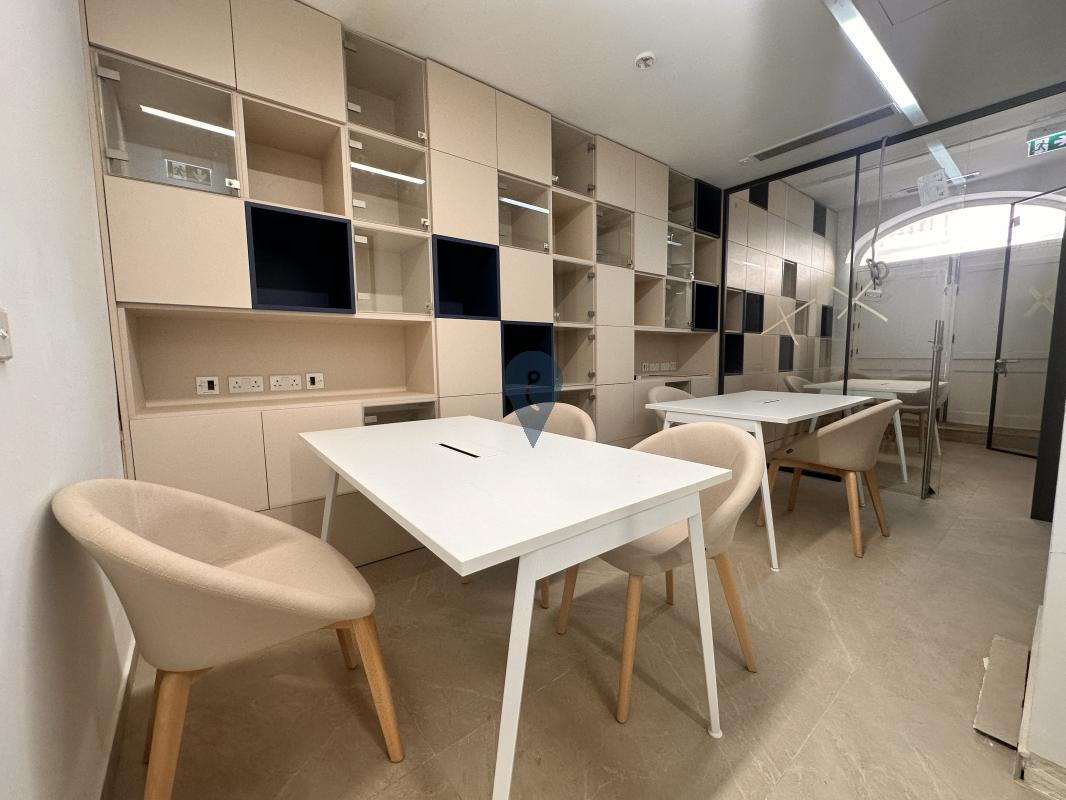 SLIEMA: Located just off Sliema seafront, this unique office has been recently finished to the highest standards. Fully furnished with state-of-the-art furniture, the offices consist of a reception area, five individually sectioned offices, a board room, a soundproof call area, a kitchenette, a server room, storage rooms, a back yard, and three restrooms, including a wheelchair accessible restroom. Highly designed to meet the latest safety and security requirements, this office space, spread over two hundred and fifty square meters, has seating for a twenty-five staff complement. Excellent location, ground floor, and superb furnishings and fittings. Proximity to Independence Gardens, Exiles beach club, coffee shops, and restaurants. Parking space served by a car lift is included.