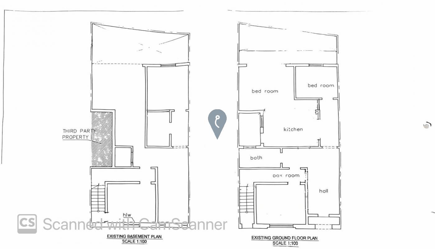 On the ground floor, you’ll find an entrance hall, kitchen, living, dining area, back balcony, and two bedrooms.