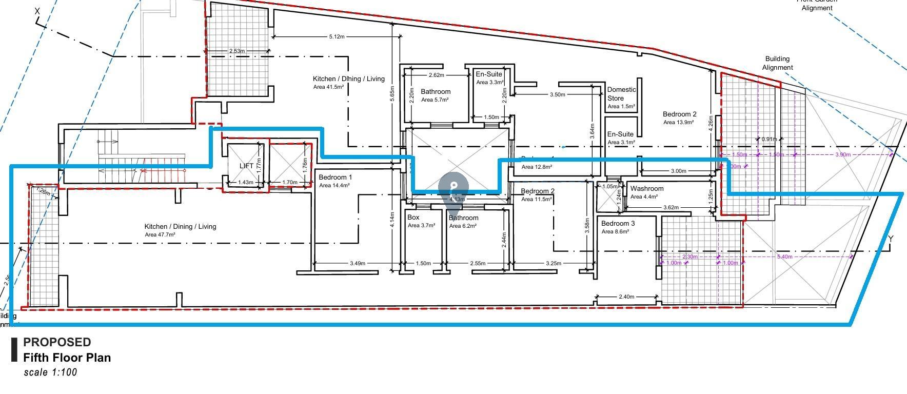 A spacious fifth-floor apartment in Bugibba, offered in shell form, situated in a quiet residential area yet only a short walk from supermarkets, everyday amenities, and the seafront promenade. Forming part of an extended block of fourteen units, this property measures a total of 144 sqm, with 126 sqm of internal space and 18 sqm of external space.