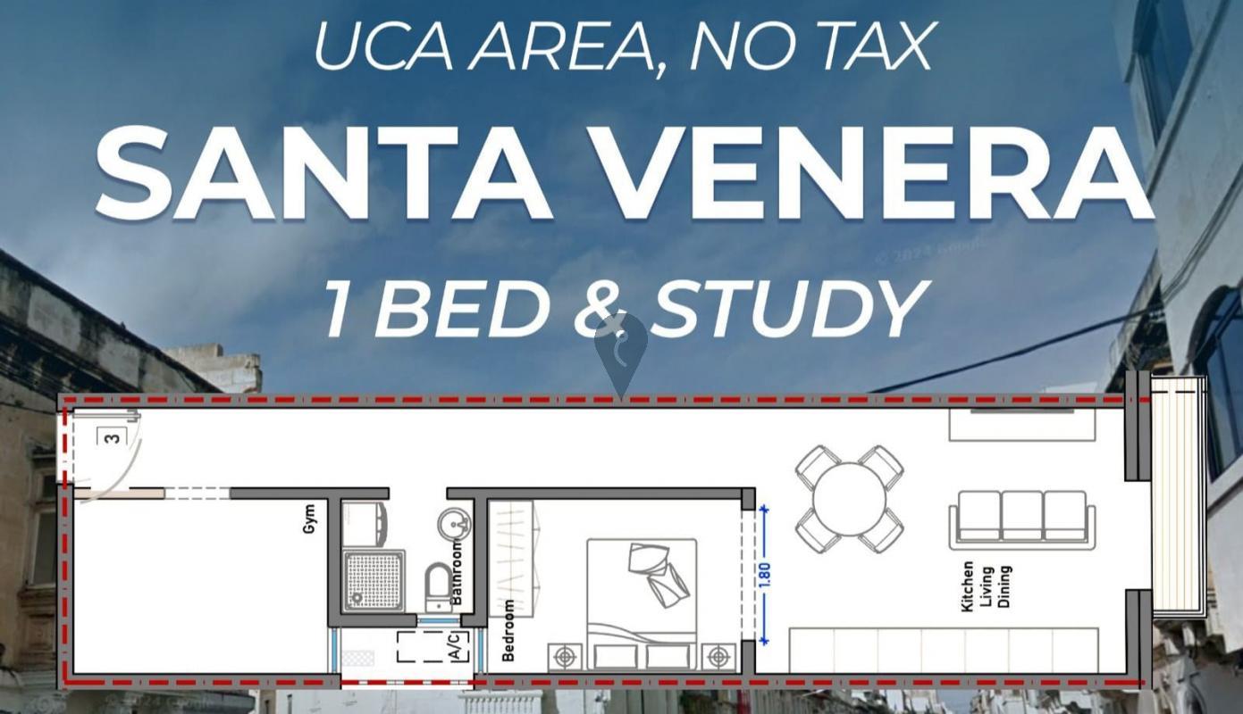 SANTA VENERA - UCA AREA - One bedroom plus study, second-floor apartment, currently on plan and will be ready for shell by December 2026. This apartment consists of an open-plan kitchen/living/dining leading to a front balcony, one double bedroom, a main bathroom, and a study room that can be converted into another bedroom. Ideal for first-time buyers. Freehold. Save on taxes due to the UCA area. Contact us for a viewing or more information.