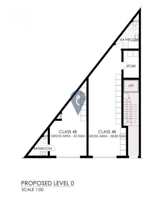 This office/retail space has a Class 4B permit and a gross area of 32 sqm, including a bathroom.