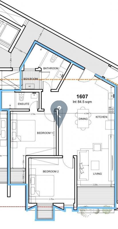 A first-floor apartment, property comprises an open plan kitchen/living/dining leading to a terrace, two double bedrooms (main with en-suite shower), a main bathroom and utility room.
