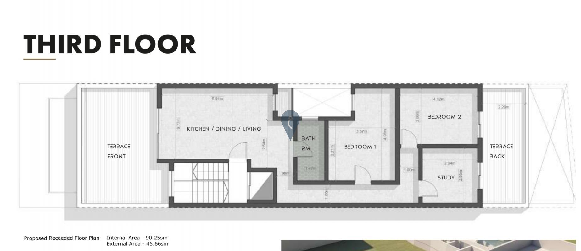MELLIEHA – Penthouse situated on the third floor in a new elevated block of three, offered finished excluding bathroom and doors. Measuring a total of 135.91 SQM (90.25 SQM internal and 45.66 SQM external) and including its own airspace, the layout features a bright open-plan living area leading onto a spacious front terrace, main bathroom, three bedrooms (main with en-suite and two with back balconies), plus an additional room that can be used as a fourth bedroom or study. Property is freehold. Contact us for more information or to schedule a viewing!